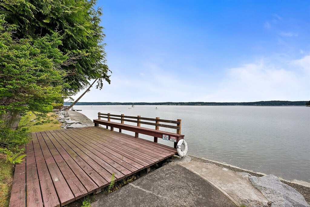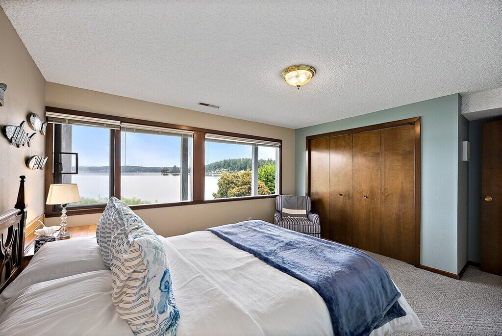 Experience the magic of the Pacific Northwest in this mid-century classic home, boasting 200 feet of private, low-bank waterfront with uninterrupted views of Puget Sound and the Olympic Mountains. Nestled on the serene and exclusive Raft Island, this peaceful getaway is just an hour south of Seattle and less than 15 minutes from charming Gig Harbor and Tacoma. This spacious home offers ample opportunities for relaxation and entertainment. Upon entering, you'll be greeted by a cozy living room with breathtaking views of the Puget Sound and Olympic mountain range. Enjoy game nights with plenty of seating, a Smart TV with streaming services, and a piano. The kitchen and dining area, located on the main floor, provide all the essentials for a home-cooked meal, with options for indoor and outdoor dining. The main level features two bedrooms: a master with a king-size bed, a 55-inch Smart TV, a full bath en-suite, and unobstructed bay views, and a second bedroom with a queen bed and a full hallway bathroom. Downstairs, you'll find a third queen bedroom, a 3/4 bath off the washer/dryer mudroom, and inspiring sound views. The property includes a deck with lounge furniture, a grass yard leading to a sandy beach with chairs, and an outdoor shower. Please note that any lost water equipment will be charged back to the primary guest. Located on Raft Island, this home offers a serene escape while being conveniently close to Seattle and Gig Harbor. Explore the nearby Tennis Court Park, offering basketball and tennis courts within a 10-minute walk. For fresh oysters, visit nearby Taylor Shellfish Farms or Minterbrook Oyster Co. Guests must be 25 or older, or traveling with adults. No parties or loud activities are allowed, as island noise restrictions are strictly enforced. The home is on a septic system, so only toilet paper should be disposed of in toilets, and no food or grease should go down the drains. Beach steps and rock paths may be slippery when wet, so use caution. Do not harvest or eat shellfish from the island beach due to toxin risk. [SI]