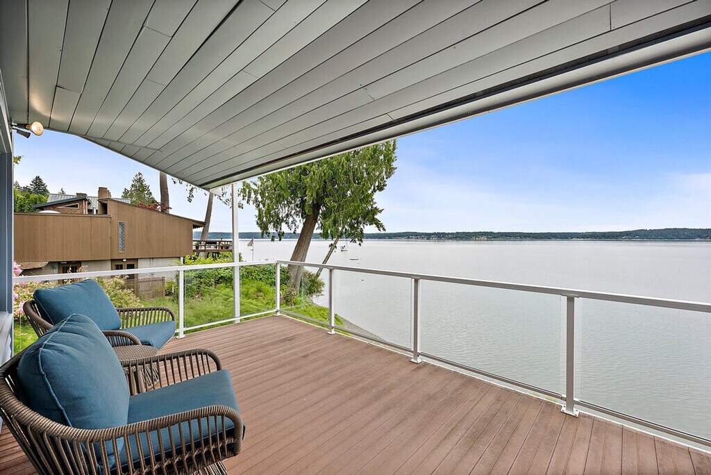 Fully furnished home on Raft Island available on flexible, short term monthly lease options October 2025.When entering the home you’ll be greeted by a cozy living room with breathtaking views of the Puget Sound & Olympic mountain range. Plenty of seating for game nights, a Smart TV with HULU, Amazon, Netlfix ready to watch and a piano, all affording endless entertainment throughout your stay! The Kitchen and dining area are located on the main floor as well, with full views throughout every corner of the living space. All the essentials for a home cooked meal provided with indoor / outdoor dining seat areas to choose from! Whether it be the sound of the sea, fresh air or plush bedding -I promise, you won't have a better night sleep than here! Two bedrooms located on this main level, the Master entails a King bed, 55 inch Smart TV, full bath ensuite and unobstructed Bay views! With a second bedroom at the opposite end of the hall, offering a Queen bed and full hallway/common bathroom. Heading downstairs, You will find there is an additional 3/4 bath off the washer/dryer mudroom with 3rd Queen bedroom, and still - inspiring sound views! You can venture out the mudroom to the Bay as you pass the outdoor shower Outside the many patio doors there is a deck with comfy lounge furniture and ground level, grass yard leading to the sandy beach with chairs and an outside shower!