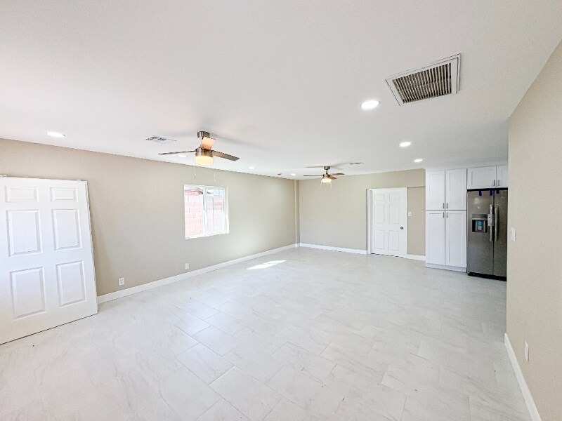 Property Id: 2371260 Welcome to this beautifully remodeled 6-bedroom, 3.5-bathroom home offering space, comfort, and a unique layout. A semi-circle driveway leads to a bright open floor plan featuring two-tone paint, tile and wood-vinyl flooring, and ceiling fans throughout. The updated kitchen showcases white cabinetry, modern fixtures, and stainless steel appliances that open to the main living area, ideal for entertaining. The split layout includes four guest bedrooms, a private guest suite with a full bath, and a secluded primary retreat with backyard access, a walk-in closet, and an ensuite with marble tile flooring, granite counters, and a walk-in tile shower. The oversized backyard offers a covered patio, lawn, RV gate, and detached studio space perfect for creative use (*no AC). Existing spa is nonworking and will not be repaired/replaced. - Utilities separate - Renters insurance required - $300 nonrefundable pet deposit per pet - Pet rent $25/month per pet (2 max) non aggressive breed. Insurance.