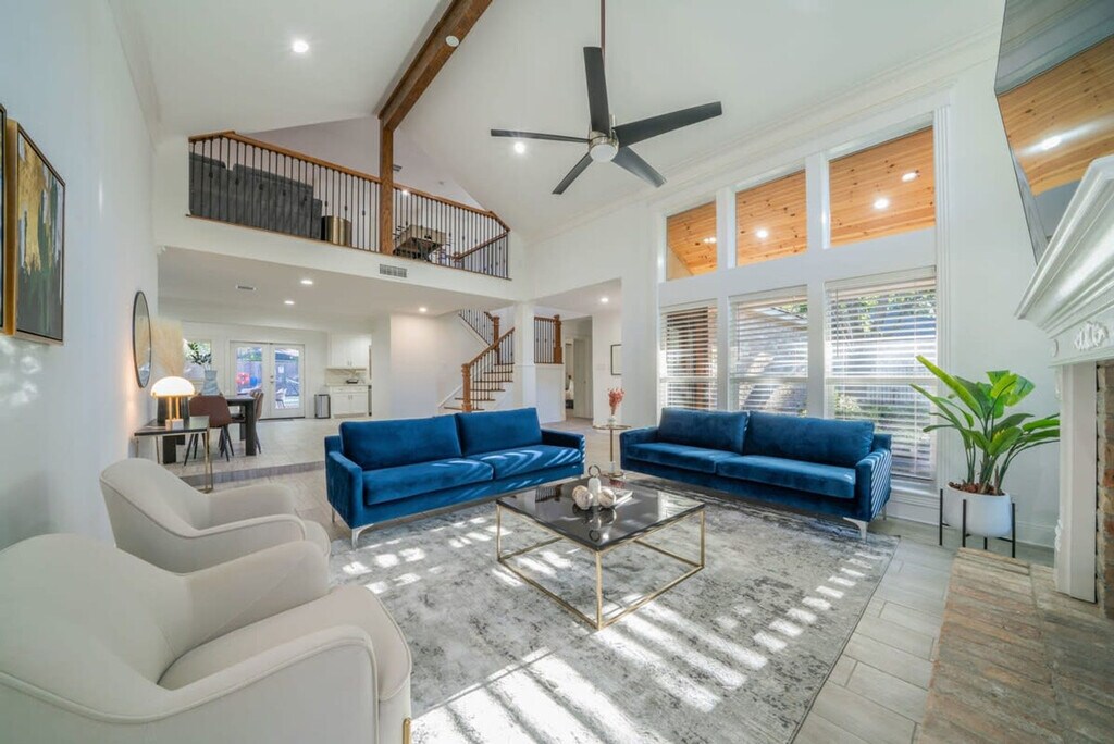 This breathtaking home just outside Houston offers proximity to many great attractions while being in a quiet neighborhood perfect for getting some rest. It offers tons of space for a large group with 5 spacious bedrooms and 4.5 bathrooms. High ceilings and amazing upgrades give this home a real WOW factor. You’ll have access to many great extras, including a fun movie room and a huge glittering pool. Our home caters to both short-term and medium-term stays, making it an excellent choice for corporate housing needs. Whether you find yourself temporarily displaced from your home or require accommodations for your team during an extended project in our area, we provide a welcoming and comfortable "home away from home" experience. The stunning exterior will be enough to convince you that you’ve made a great choice. The front of the home exudes charm with the brick exterior, lots of trees, a water fountain, large lawn, and gorgeous landscaping. Feel free to park your cars under the carport to keep them in the shade and away from any rain. The living area is a standout with vaulted ceilings and floor-to-ceiling windows, lending a bright and airy atmosphere. Stand in the middle of the living area and you can get great views on both sides — the water fountain in the spacious front yard or the sparkling pool in your backyard. The room is luxurious yet cozy, accented with the classy sofas, rug, and décor. Plus, you’ll love cozying up by the beautiful fireplace. A more casual hangout spot is the second living area on the upper floor that comes equipped with cushy furniture and a foosball table. And a sweet extra this home offers is your very own movie room with a comfy sectional sofa and movie posters decorating the walls. The kitchen has lots of counter space, beautiful tiles, and stainless-steel appliances. It comes fully equipped with everything you might need whether you’re preparing your own fresh meals or just enjoying some delicious local takeout. Have your meals in the cute breakfast area looking out into the backyard or your whole group can have their food together around the table in the beautifully decorated dining room. You’ll have 5 spacious bedrooms available, all furnished with cozy high-end furniture, lavish linens, and beautiful décor. You’ll also have 4.5 bathrooms so no one will have to fight over bathroom time. They are all soothing with neutral finishes and nicely remodeled with gorgeous counters, huge walk-in showers, and double vanities. You will love the outdoor spaces this home offers. There’s a cozy balcony with great seating and a relaxing swing egg chair. It’s a great spot to start or end your day. The backyard has a covered patio area and an outdoor dining area if you want to enjoy your meals while enjoying the weather. Don’t leave your furry friends back home. Take them with you so they can enjoy a perfect vacation. We welcome house-trained pets with a non-refundable pet fee of $150 per pet with a maximum of 2 pets per stay. Please notify us in advance so we can make the necessary arrangements to ensure a comfortable stay for you and your four-legged companions. Our nightly rate includes the first six guests. With each additional guest, a $29 per night fee will be applied. Vehicles shall be parked on the driveway only. The city does not permit vehicles parked on the street and this has been actively enforced. Any vehicles on the street will get a ticket. The maximum cars allowed are 2 cars in the covered parking and 4 cars in the uncovered parking. Your vacation home is located in Jersey Village, a small city in the Houston–Sugar Land–Baytown metropolitan area. You’ll be just 23 minutes to downtown Houston and 20 minutes to George Bush Intercontinental Airport. You’ll have no problem finding attractions that will appeal to every member of your group. There are many great spots where you can soak in nature. Jersey Lake and Clark W Henry Park are both only 2 minutes away. Mandolin Gardens Park is 12 minutes away and is an 11-acre oasis, featuring 2 miles of trails, overlooks, and beautiful landscaping and architecture that includes amazing water features. If you’re looking to do some shopping, The Galleria shopping mall is 18 minutes away. And downtown Houston offers many exciting attractions, including Houston Downtown Aquarium and Houston Grand Opera. The Museum of American Architecture and Decorative Arts allows visitors to take a step back in time as they learn about the social history and culture of people settling in Texas from 1830 to 1930. Finally, the Space Center is 45 minutes away and is a must-see. Discover the promising future and extraordinary past of America’s human spaceflight program set among more than 400 space artifacts, including flown spacecraft and the largest collection of moon rocks on public display. Smoking of any type is not allowed. Violations are subject to a $450 fine plus the cost to clean, deodorize, and repair damages. Check-in is at 4pm and checkout is at 10am. No parties or events are allowed. Pet should be discussed in advance. We only allow house-trained pets and ask to make sure they keep off beds and furniture. Pet cleaning fees to be applied. Full disclosure policy for numbers of people on the property at any time with security camera verification to comply with local laws and the booking platform policies. Rest assured, no cameras in any inside private areas, we respect the privacy of our guests. Small low-key gatherings are allowed only upon request and approval in advance. Our fireplace is gas operated. Only use this fireplace if you are familiar with how to use it properly and be aware that you are doing so at your own risk. Do not leave it unattended at any time. Our spa heating element and jets are inoperable. We offer plenty of body towels for your use but feel free to bring your own pool towels if you'd like. In order to be a good neighbor and host responsibly, comply with local noise ord