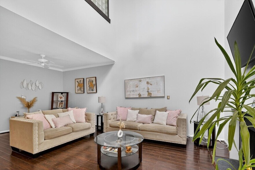 Welcome to 1532 Prairie Grove Dr, nestled in the desirable Walkers Mark community. This 3-bedroom, 3.5-bath home offers a functional layout with spacious living areas, soaring ceilings, wood-look floors, and a cozy fireplace. The kitchen features granite counters, stainless steel appliances, and an adjacent dining room. The primary suite boasts a screened-in balcony, walk-in closet, and an ensuite bath with dual vanities. Two additional bedrooms share a full bath, and a convenient upstairs laundry is nearby. Enjoy outdoor living with a private fenced patio and covered seating area. The attached two-car garage offers rear access. Community amenities include a pool, clubhouse, and landscaped grounds. HOA covers exterior maintenance, water, and common area upkeep. Conveniently located near I-10, Beltway 8, shopping, dining, and parks. Zoned to Houston ISD schools, this home blends comfort, style, and a prime location!