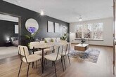 Stay in style in Raleigh, ranked among the "Best Places to Live" by Money Magazine. This classy 1,404-square-foot 3-bedroom, 2-bathroom apartment features a king-size bed and four plush full-size beds for your comfort. With lightning-fast Wi-Fi, a height-adjustable standing desk, and a fully equipped kitchen, this home is specially designed for longer stays. Step out to a lively neighborhood, close to restaurants, cafés, bars, and shops, and feel at home in this vibrant city. Begin your day with a perfectly brewed cup of tea or coffee from the convenient coffee station in your upscale kitchen. Whether you're here for business or leisure, this space provides the perfect balance of comfort and convenience. With vibrant restaurants just minutes away, explore the culinary scene in Raleigh each night. After a long day, enjoy a 5-star dining experience at home with your well-equipped kitchen and elegant dining table. This space serves as the perfect home base for work, relaxation, and entertainment. The inviting open-concept living area is elegantly furnished, featuring large windows that flood the space with natural light, modern décor, and high-end finishes. Enjoy the energy-efficient in-unit washer and dryer, a spacious living area with plush seating, a 55” Smart 4K TV, and fast Wi-Fi perfect for streaming or remote work. We welcome up to two pets per reservation, each weighing under 35 lbs, with a fee of $49 per pet for stays of 1–6 nights. Additional charges apply for longer stays. For pets over 35 lbs, a one-time large pet fee applies. Bringing undisclosed pets may result in a minimum $500 fine and cancellation of your stay without refund. Early check-in and late checkout are available based on availability for an additional fee. Optional mid-stay cleaning is offered for extended stays, including new linens and surface cleaning. Situated in a vibrant neighborhood, this property places you within minutes of top attractions, dining, and nightlife. Enjoy easy access to the North Carolina Museum of Natural Sciences, Pullen Park, the North Carolina Museum of Art, Raleigh Convention Center, Marbles Kids Museum, North Carolina State Capitol, North Carolina State University, and Glenwood South, all within a 20-minute drive. Quiet hours are enforced from 8:00 PM to 8:00 AM. Noise levels exceeding 80 decibels for more than 10 consecutive minutes will result in a $2,500 fine and immediate removal from the property. Smoking is strictly prohibited, and tampering with smoke detectors will incur a $2,500 fine and immediate removal. Unauthorized guests will result in a $500 fine per person and immediate removal. The property is equipped with a smart lock for self check-in, and detailed instructions will be provided prior to arrival. Guests are responsible for disposing of all trash and recycling in designated areas. Unauthorized late checkouts are considered trespassing and may result in additional charges. The dedicated work station includes a standing desk, perfect for remote work, and fast Wi-Fi at 300+ Mbps, ideal for streaming, remote work, or video calls. A laptop computer is not included. [SI]