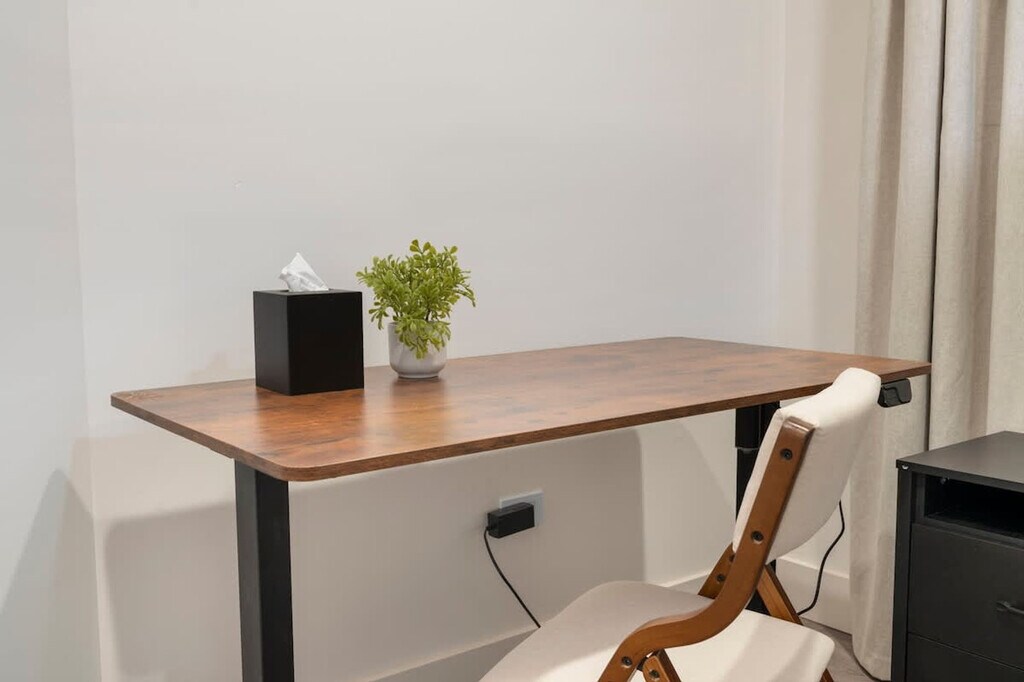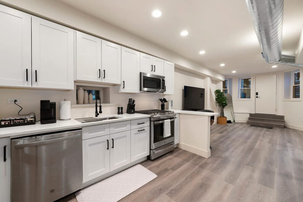 Experience upscale living in this spacious 1,400 sq ft condo featuring a gourmet kitchen with quartz countertops, shaker cabinets, and a wine cooler. The open-concept design boasts high ceilings, hardwood floors, and abundant natural light. Retreat to a generously sized bedroom with ample closet space and enjoy modern bathrooms with premium fixtures. Located in vibrant Wicker Park, you're steps away from trendy shops, eateries, and public transit. This condo offers oversized windows that flood the space with natural light, a gourmet kitchen with modern shaker cabinetry, quartz countertops, and a built-in wine cooler. It is work-from-home ready with dedicated workspaces, luxury bathrooms with spa-inspired design, and elegant wide-plank flooring throughout. Enjoy the convenience of an in-unit washer and dryer, high-speed internet, and family-friendly amenities like a high chair and crib upon request. Free on-site parking is also available. Family-friendly amenities include a high chair and crib available upon request. Free on-site parking is provided for your convenience. Situated in a prime Wicker Park location, this condo is steps from top-rated restaurants, trendy bars, and unique boutiques. With unmatched walkability, everything you need is right outside your door. Effortless transit access allows you to walk to the CTA Blue Line for quick trips downtown and to O’Hare Airport. Just a 15-minute train ride to the Loop, you'll find convenient shopping nearby at Whole Foods, Mariano’s, and Target for all your essentials. This is a quiet residential area with noise levels monitored by a sensor in the living room. A camera at the property entrance monitors the exterior. Three warnings will be given for excessive noise, and a $1,000 penalty will be charged for continued violations. Absolutely no smoking inside the unit, with a $1,000 cleaning fee applied for violations. No drugs of any kind are permitted on the property, with immediate removal and no refund if drugs are detected, and a $1,000 fine for any violation. Quiet hours are between 22:00 and 8:00. No additional guests are allowed who were not on the reservation, and guests are liable for any damage to the property. The condo is work-from-home ready with dedicated workspaces for remote work or business travelers. High-speed internet ensures seamless work and streaming. [SI]