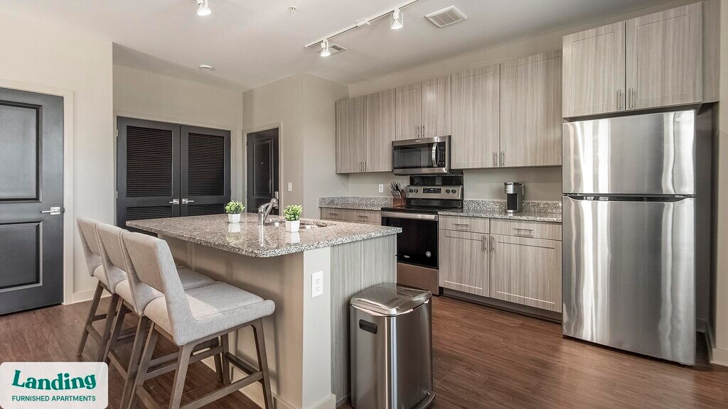 Landing offers flexible lease terms from weeks to months. Please always visit our website or contact us for the latest pricing & availability. Stay longer, save more: 6-Month Minimum base rent: starts at $2150/mo 12-Month Minimum base rent: starts at $2150/mo Landing offers flexible leases across a network of over 35,000 fully-furnished apartments throughout 375+ cities so you can rent on your terms, practically anywhere, and avoid the hassle of paying deposits or application fees. Visit to learn about all the benefits of a Landing membership, see our competitive up-to-date pricing, explore available apartments, take virtual tours, and make reservations online without jumping through traditional rental hoops. Landing's apartments at Madison Midtown are designed for comfortable, easy living, with the ability to stay as long as you like. Experience living with Landing Every apartment is outfitted with all the modern essentials including: custom-designed furnishings, a fully-equipped kitchen with deluxe stainless steel appliances, a gourmet coffee maker, premium linens, Smart TVs, and incredibly fast, reliable internet for working from home. When you live with Landing, you'll enjoy a hassle-free experience with the added benefit of 24/7 access to our dedicated member experience team. Some of the nitty-gritty: a background check and proof of income are required; we're completely smoke-free; bundled utility packages and pricing vary based on length of stay; pet-friendly options available; listed price reflects a 12-month minimum stay.