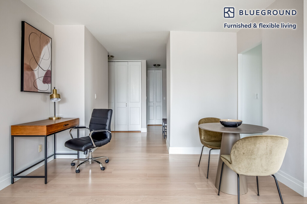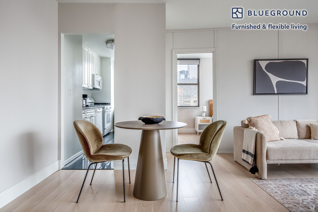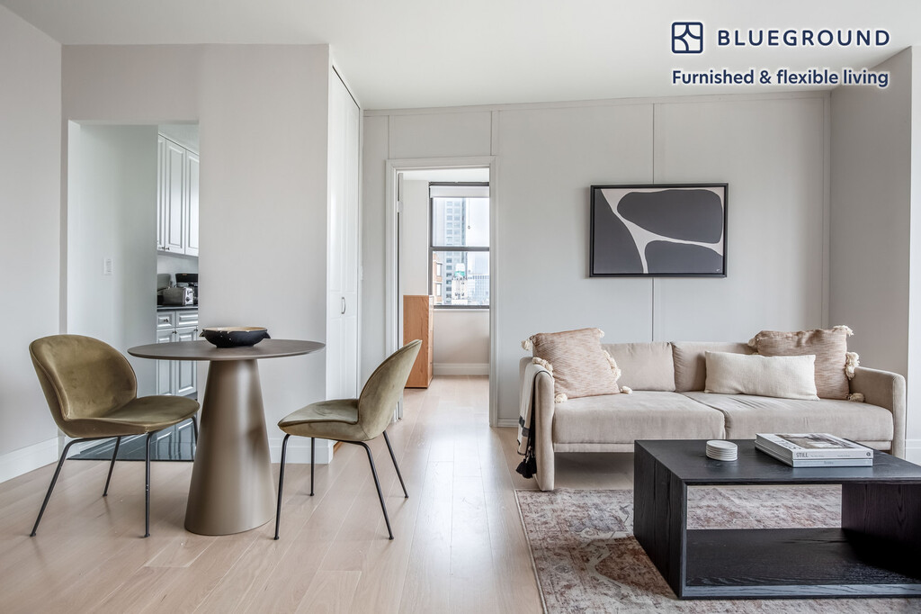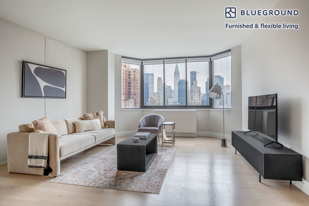 Discover the best of New York, with this two bedroom apartment in Kips Bay with high floor views over the city. It’ll be easy to simply show up and start living in this furnished apartment with its fully equipped kitchen, living room, and our dedicated, on-the-ground support. (ID #NYC1231) The advertised rate of $7,690/month is the lowest available price, based on a 12 month(s) stay with a move-in date of June 1, 2026. Rates vary depending on the duration of stay, season, and other parameters. For exact pricing and additional pricing components, please visit our website and enter your desired move-in and move-out dates. The rate is applicable when billed upfront; it can be higher if billed in multiple payments. Brokers are welcome to reach out. Were you looking for an unfurnished lease? Try Blueground instead and upgrade from unfurnished to furnished living: - Furnished at rates comparable to unfurnished - No setup or furniture costs - save thousands - Move-in ready - save time, just bring your suitcase Designed with you in mind Gorgeous furniture, fully equipped kitchen, smart TV, and a premium wireless speaker are just a few of the amenities you’ll find inside this two bedroom apartment. Ideally located in New York, you’ll find a lot to love outside as well. When you’re ready to relax, you’ll be happy to discover every Blueground bedroom comes with superior quality mattresses, luxury linens, and cozy towels. We handle everything so you can simply show up and start living. This apartment also offers in-floor laundry. Sleeping arrangements Queen Bed, 63in/160cm Queen Bed, 63in/160cm Amenities Building amenities unique to this two bedroom apartment include an on-site: - Doorman - Dryer of floor - Elevator - Swimming pool - Washing machine on floor - Lounge - Pets allowed - Sauna Arrival and ongoing support The entire apartment is yours to enjoy! Throughout your stay, you’ll have access to our Client Experience team through the Blueground App. You can schedule additional cleanings, submit maintenance requests, and view our neighborhood recommendations with just a few taps. We’ll share all details upon confirmation of your stay. Ideally Located This furnished property is situated in Kips Bay. Stretching from the East River to Lexington Avenue, the peaceful neighborhood offers convenience and easy access to the rest of the city. Several hospitals are located here, making it a hub for medical care. Kips Bay offers dining options for every budget as well as numerous cinemas and fitness centers. During the weekends, locals stroll alongside the water, take the water taxi to another borough, or hang out in one of the parks, such as Bellevue South. From here, Rockefeller Center is only 20 minutes away by subway. Other things to note Building amenities may have an extra cost. This Blueground apartment has flexible lease options, allowing you to book it for one month, a year, or more. Pets are welcome, though weight limits and breed restrictions apply and may incur fees. Brokes CYOF. We take great pride in ensuring every photo displayed is shot in our own units with our actual furnishings. That said, we regularly refresh our decor and furniture arrangement, which may differ from what’s pictured.