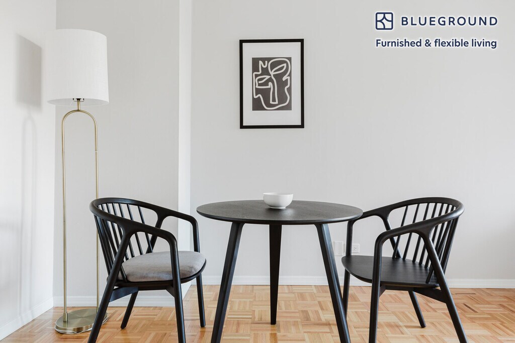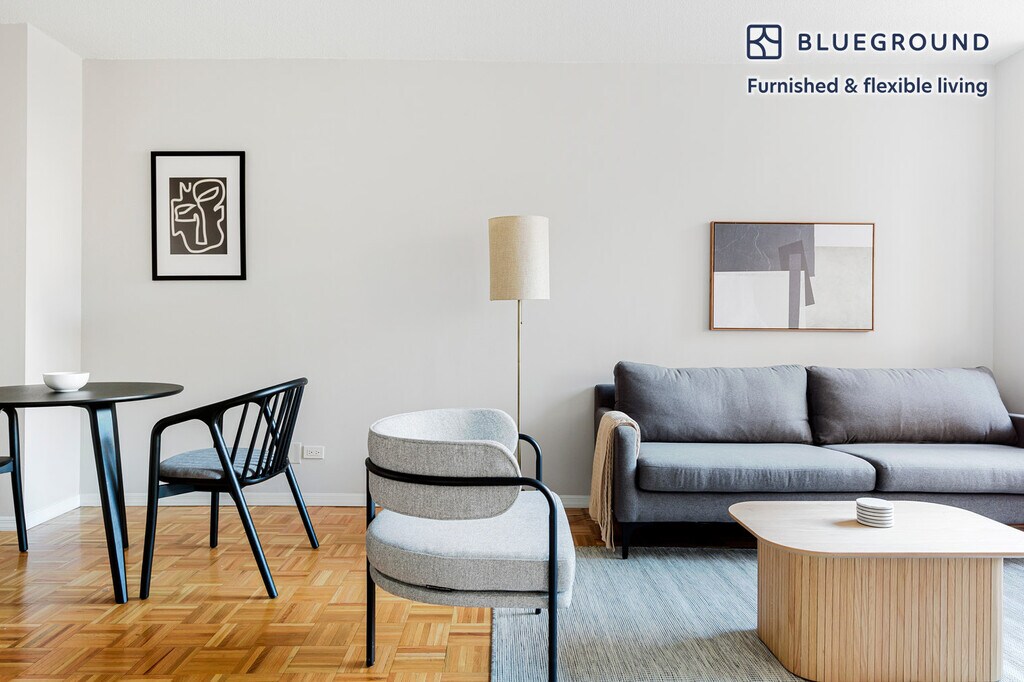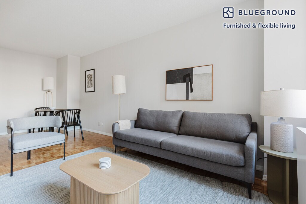 Show up and start living from day one in New York with this spacious one bedroom Blueground apartment. You’ll love coming home to this thoughtfully furnished, beautifully designed, and fully equipped Manhattan home with stunning high floor views over the city. (ID #NYC1719) The advertised rate of $4,600/month is the lowest available price, based on a 12 month(s) stay with a move-in date of February 26, 2026. Rates vary depending on the duration of stay, season, and other parameters. For exact pricing and additional pricing components, please visit our website and enter your desired move-in and move-out dates. The rate is applicable when billed upfront; it can be higher if billed in multiple payments. Brokers are welcome to reach out. Were you looking for an unfurnished lease? Try Blueground instead and upgrade from unfurnished to furnished living: - Furnished at rates comparable to unfurnished - No setup or furniture costs - save thousands - Move-in ready - save time, just bring your suitcase Designed with you in mind As with any Blueground apartment, you’ll find a thoughtfully designed space complete with beautiful furniture and a fully equipped kitchen in this one bedroom property. And, thanks to our superior quality mattresses, luxury linens, and towels, you can relax knowing you’ll always feel comfortably at home. When you’re ready for some fun, you can take in the New York vibes or bring the entertainment to you with the premium wireless speaker or smart TV. Sleeping arrangements Queen Bed, 63in/160cm Amenities Building amenities unique to this one bedroom apartment include an on-site: - Doorman - Elevator - Swimming pool - Lounge - Sauna Arrival and ongoing support The entire apartment is yours to enjoy! Throughout your stay, you’ll have access to our Client Experience team through the Blueground App. You can schedule additional cleanings, submit maintenance requests, and view our neighborhood recommendations with just a few taps. We’ll share all details upon confirmation of your stay. Other things to note Building amenities may have an extra cost. This Blueground apartment has flexible lease options, allowing you to book it for one month, a year, or more. Brokes CYOF. We take great pride in ensuring every photo displayed is shot in our own units with our actual furnishings. That said, we regularly refresh our decor and furniture arrangement, which may differ from what’s pictured.