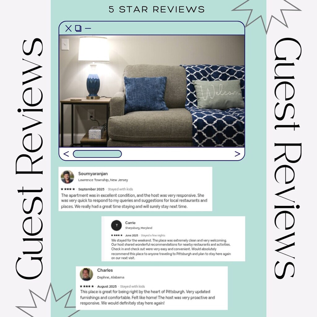 Meet your new Mount Washington getaway! Feel at home in this newly renovated 3-bedroom home in a centrally located community. The kitchen is fully stocked with a gas stove, dishwasher, oven, Keurig coffee machine, kettle, and all the cookware and tableware required to prepare a gourmet meal. There are 2 dining tables, and four people can be seated at each table. Savor unwinding on the cozy couches as you watch your preferred series on the high-definition smart TV. The bathroom has a shower and a bathtub and was recently renovated with a modern aesthetic. Use the hair dryer, body wash, conditioner, shampoo, and premium towels that are provided, along with the personal care products. A washer and dryer are located in the basement available for guests to use at no additional cost. Guests have access to a shared concrete backyard area with an outdoor table and chairs to accommodate up to 6 guests. The backyard is also a space for dogs. There is a parking spot in the back for 1 vehicle, and there is street parking in the front. A pack-and-play is available for use. Close and convenient to Duquesne Incline (upper station (1 min / 0.3 miles)), PPG Paints Arena (7 mins / 2.2 miles), downtown (8 mins / 2.3 miles), PNC Park (10 mins / 4 miles), and Acrisure Stadium (11 mins / 2.9 miles). Other fantastic places to explore include Point State Park (9 mins / 2.4 miles), Andy Warhol Museum (11 mins / 2.9 miles), Rivers Casino (11 mins / 3.6 miles), National Aviary (12 mins / 4 miles), Carnegie Science Center (12 mins / 4.4 miles), Phipps Conservatory (14 mins / 4.9 miles), Pittsburgh Zoo and Aquarium (15 mins / 8.8 miles), Sandcastle Water Park (20 mins / 8.9 miles), and Kennywood Park (24 mins / 11.7 miles). Colleges/Universities within a 15 minute drive include Point Park University (5 mins / 2 miles), Duquesne University (6 mins / 2 miles), Carlow University (7 mins / 3.5 miles), University of Pittsburgh (11 mins / 4.3 miles), and Carnegie Mellon University (14 mins / 4.8 miles). Hospitals within a 15 minute drive include UPMC Magee-Womens Hospital (7 mins / 3.6 miles), UPMC Mercy (7 mins / 2.5 miles), UPMC Montefiore (8 mins / 3.7 miles), Select Specialty Hospital (9 mins / 3.9 miles), UPMC Presbyterian (10 mins / 3.9 miles), UPMC Children's Hospital ( 11 mins / 5.1 miles), Pittsburgh VA Medical Center (11 mins / 4.8 miles), West Penn Hospital (12 mins / 5.1 miles), Allegheny General Hospital (13 mins / 4.3 miles), and Western Pennsylvania Hospital (14 mins / 6.9 miles). The home includes 3 real beds but can accommodate up to 8 guests. Sleeping arrangements for the 7th and 8th guest are on the couch, which would be best suited for a child, or an adult if he/she is willing. If one guest is a baby/young child using the pack-and-play, we would be willing to accommodate 9 guests. High-speed reliable Wi-Fi is available. [SI]