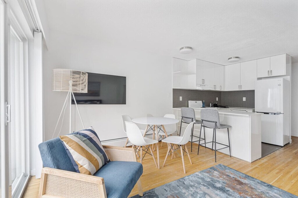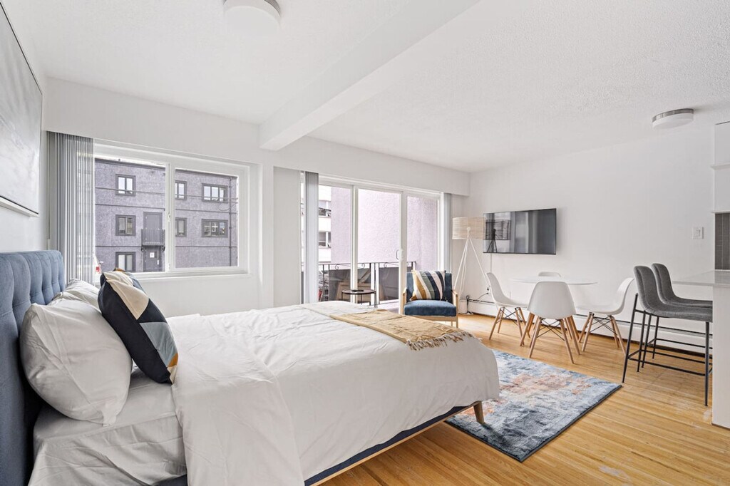 Discover your stylish sanctuary in the heart of Fairview! Nestled on W 11th, this stylish studio apartment is your ticket to experiencing Vancouver like a local. Immerse yourself in the lively atmosphere of South Granville's shops and eateries just steps away, or hop on nearby bus routes for easy access to downtown and beyond. With modern amenities, a cozy atmosphere, and unbeatable convenience, your stay here will be nothing short of unforgettable. Discover the perfect blend of comfort and excitement. Welcome to your month-long haven, where comfort is key! Sink into the plush queen-size bed after a day of exploring, or relax in the cozy living area with a Smart TV offering endless entertainment options. Prepare delicious meals in the fully stocked kitchen, in-suite laundry and equipped with all the essentials you need. Convenience is paramount with shared laundry facilities readily accessible in the building. And for those moments of relaxation, step out onto your private balcony and take in the sights and sounds of Fairview. Your extended stay begins here, where comfort meets convenience in the heart of Vancouver. Welcome to the heart of Vancouver living in Fairview, where convenience meets charm! Just steps from the vibrant South Granville street and a quick hop to Downtown, yet nestled within walking distance to hospitals and only 15 minutes from UBC. Enjoy the best of both worlds with numerous shops, restaurants, and cafes at your fingertips, ensuring every need is met. Situated on a tranquil street, yet mere blocks from bustling Broadway, where transit options abound, making exploring Metro Vancouver a breeze. Embrace the perfect blend of urban excitement and serene living during your stay in Fairview! Navigating Fairview and the South Granville area couldn't be easier. Just a brief stroll away, you'll find the main Granville Street bus route, ensuring convenient access to transportation in just five minutes. Plus, routes along Broadway are a mere three-minute walk, providing even more options for getting around. For added flexibility, Uber and Lyft services are readily available, making it a breeze to explore everything this dynamic neighborhood has to offer. Distances to Landmarks: 15 min drive to YVR airport, 5 min drive Downtown, 10 min drive to UBC, 15 min walk to VGH, 1 block from nearest transit routes (main routes), 5 min walk to nearest grocery and pharmacy. No parties, no smoking, no unauthorized guests. [SI]
