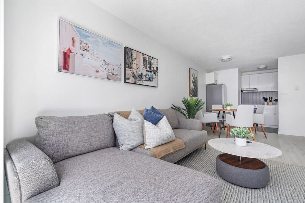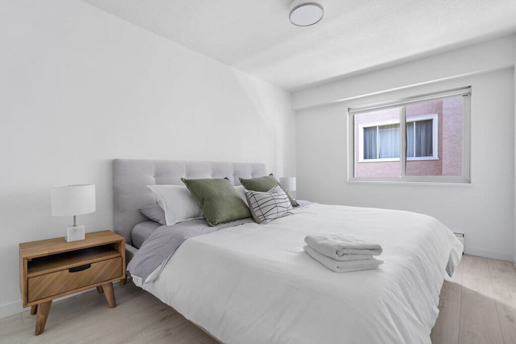 Step into this gorgeous and newly furnished condo situated in the coveted Fairview neighborhood of Vancouver. This characteristic home offers a sizeable layout with a 1-bedroom, a full kitchen, a comfortable living room, and a patio for you to enjoy the fresh air of BC from your own home. The space within this home is characterized by refreshing textures and pastel colors, achieved through brand-new furnishing. The home itself offers a full kitchen, a large living space with a patio, a full bedroom with a queen bed, a full bathroom, and an in-suite washer and dryer. The composition of the condo is breathable and refreshing, expressed through an open-concept layout. All essentials that you could need are stocked within the home. Located in the beautiful Fairview of Vancouver, just a block away from restaurants and shops along South Granville. Enjoy the best of both worlds in a quiet residential neighborhood but near all of Vancouver's action in the Downtown core. Situated in the center of Vancouver's greatest attractions, such as Granville Island, Kitsilano neighborhood, and the Mount Pleasant area. Getting around Fairview and the South Granville area is optimized to be simple and effective with the main Granville Street bus route only a 5-minute walk away and routes that run on Broadway just a 3-minute walk. Uber and Lyft are accessible in the area as well. No parties, events, or large gatherings are allowed. No smoking in or on the property. [SI]