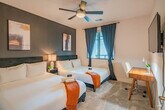 Relax and unwind in this stylish 1-bedroom apartment located in the heart of Scottsdale. This vibrant area is home to numerous award-winning restaurants, shops, historic landmarks, and attractions. From this prime location, exploring Arizona and the surrounding region is easy and convenient. When you're ready to wind down, simply retreat to the comfortable apartment to relax. The apartment includes one parking spot, with additional parking options available nearby. Come relax in this 1-bedroom, 1-bathroom unit. The living space features an innovative open-concept design that blends the living and dining areas with the kitchen, creating a modern and sleek living experience. The living room is ideal for relaxing and enjoying the company of friends and family while watching a good movie or a show. It includes a sofa bed, a 4K 58" HDR Smart TV, and a coffee table. The fully equipped kitchen allows you to easily prepare your favorite meals, featuring a microwave, stove, oven, refrigerator/freezer, dishwasher, toaster, coffee maker, and dining table with chairs. The bedroom offers two queen-size beds, a 43" Smart TV, and an office desk with a chair. The inviting full bathroom is stocked with all essential toiletries. Pets are allowed depending on size or if they are service animals. An additional cleaning fee is required per pet: $25 per night for 1-7 nights, $200 for 8-29 nights, and $300 for 30+ nights. There is a 2-pet maximum and only cats and dogs are allowed. If pets are brought without prior notification, a $500 fee will be imposed. The apartment includes noise monitors and security cameras in the hallways. Parking includes one spot, with additional options available nearby. Nestled in the heart of Scottsdale, this apartment offers a perfect blend of comfort and convenience. The neighborhood is an ideal choice for travelers seeking a luxurious desert escape with easy access to the best the city has to offer. Enjoy a peaceful stay in this upscale residential area with tree-lined streets and well-maintained properties. Outdoor enthusiasts will love the nearby McDowell Sonoran Preserve with its scenic hiking trails and stunning desert vistas. Just a short drive away, you'll find Scottsdale's vibrant dining scene, trendy boutiques, and world-class golf courses. The area is also known for its rich cultural scene, including art galleries, museums, and unique festivals. Quiet hours are between 10pm and 8am every day. Violations may result in cancellation of booking and removal from the property without refund. There is a strict no-party policy, and unauthorized guests will incur a $100 fine per guest. Smoking is prohibited on the property, including balconies and surrounding areas, with a $500 fine for violations. Lost or unreturned keys will incur a $500 fee. Early check-in or late check-out may be available for a fee of $25 per hour, with a $500 fee for delayed check-out without prior arrangement. Regular pest control is conducted, but occasional small bugs may be present due to seasonal changes. The bedroom includes an office desk and chair, providing a comfortable space for remote work. High-speed Wi-Fi is available throughout the apartment.