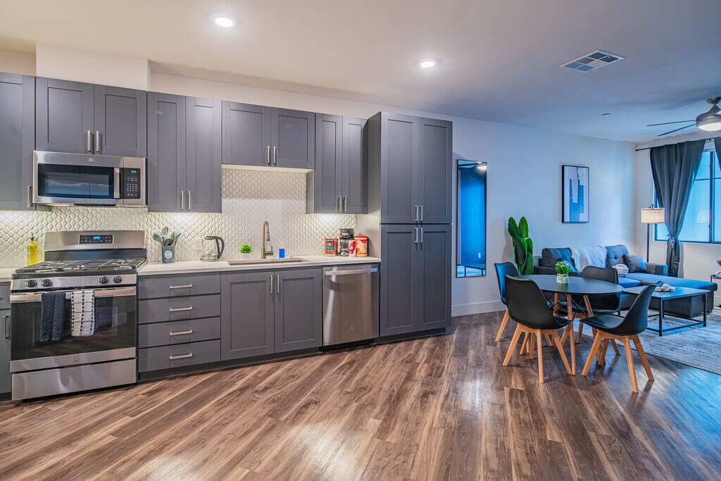 Experience the vibrant lifestyle of Scottsdale in this chic 1-bedroom apartment, just steps away from Old Town, nightlife, award-winning restaurants, golf courses, shops, and local attractions. With its central location, exploring Arizona and nearby destinations is effortless, making it the perfect stay for business or leisure. Relax in this stylish 1-bedroom, 1-bathroom apartment featuring an innovative open-concept design that seamlessly blends the living and dining areas with the fully equipped kitchen. The living room is ideal for enjoying the company of friends and family with a 4K 58" HDR Smart TV and a comfortable sofa bed. The kitchen is equipped with modern amenities including a microwave, stove, oven, refrigerator, dishwasher, and more, allowing you to prepare your favorite meals with ease. The bedroom offers two queen-size beds, a 43" Smart TV, and an office desk, providing a perfect retreat for relaxation and work. The apartment includes one parking spot, with additional parking available in nearby garages or on the street. Pets are allowed with an additional cleaning fee depending on the length of stay, and there is a 2-pet maximum with specific breed restrictions. If pets are brought without prior notification, a $500 fee will be charged. Nestled in the heart of Scottsdale, this apartment offers a perfect blend of comfort and convenience. Enjoy a peaceful stay in this upscale residential area with tree-lined streets and well-maintained properties. The nearby McDowell Sonoran Preserve offers miles of scenic hiking trails, while Scottsdale's vibrant dining scene and trendy boutiques are just a short drive away. With several world-class golf courses nearby and a rich cultural scene, this location provides plenty of entertainment options. The safety and well-being of guests are of utmost importance, with a thorough cleaning process after each check-out. Guest verification is required, including providing a government-issued ID and credit card, and possibly undergoing a background check. Noise monitors are installed to measure noise levels, and tampering with them will incur a fee. Security cameras are present in the hallways for added security. The apartment includes a dedicated office desk and chair in the bedroom, perfect for those who need a remote work-friendly environment. Fast and reliable Wi-Fi is available to ensure a seamless work-from-home experience. [SI]