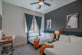 Relax and unwind in this stylish 1-bedroom apartment located in the heart of Scottsdale. This vibrant area is home to numerous award-winning restaurants, shops, historic landmarks, and attractions. From this prime location, exploring Arizona and the surrounding region is easy and convenient. And when you're ready to wind down, simply retreat to the comfortable apartment to relax. The apartment includes a sofa bed and chair, a 4K 58" HDR Smart TV, and a coffee table in the living room. The apartment features an innovative open-concept design that blends the living and dining areas with the kitchen, creating a modern and sleek living experience. The fully equipped kitchen includes a microwave, stove, oven, refrigerator/freezer, dishwasher, toaster, coffee maker with coffee essentials, electric kettle, sink with hot and cold water, glasses, silverware, pots and pans, and a dining table with chairs. The bedroom offers two full-size beds with pillows, linens, and sheets, a 43" Smart TV, an office desk and chair, and reading lamps. The inviting full bathroom is completely private and stocked with all essential toiletries. Only one parking spot is included, and there may be additional parking in garages or on the street nearby. Details will be given during check-in instructions. Pets are allowed depending on size or if they are service animals. An additional cleaning fee is required per pet: $25 per night for stays of 1-7 nights, $200 for stays of 8-29 nights, and $300 for stays of 30+ nights. There is a 2-pet maximum, and only cats and dogs are allowed. If pets are brought without prior notification, a $500 fee will be imposed. Nestled in the heart of Scottsdale, this apartment offers a perfect blend of comfort and convenience. The neighborhood is an ideal choice for travelers seeking a luxurious desert escape with easy access to the best the city has to offer. Enjoy a peaceful stay in this upscale, residential area where tree-lined streets and well-maintained properties create a tranquil environment perfect for relaxation. The nearby McDowell Sonoran Preserve offers miles of scenic hiking trails and stunning desert vistas, perfect for outdoor enthusiasts. Just a short drive away, you'll find Scottsdale's vibrant dining scene and trendy boutiques. Explore the local shops or indulge in a meal at one of the city's renowned restaurants. With several world-class golf courses nearby, you can enjoy a round of golf surrounded by breathtaking desert landscapes. Scottsdale is known for its rich cultural scene, including art galleries, museums, and unique festivals that provide plenty of entertainment options. Quiet hours are between 10pm and 8am every day. If there are noise complaints or any violation of this rule, it may result in cancellation of booking and removal from the property without refund. There is a strict no-party policy, and if there is a party of any kind, the police will be called, and everyone will be removed from the property with no refunds. No unauthorized guests are allowed at the unit, with a $100 fine per guest if discovered. Smoking is prohibited without exception on this property, including balconies and in or around the building. If any signs of smoking are found, a fine of $500 will be imposed. Depending on the cleaning schedule, early check-in/check-out may be accommodated at a fee of $25 per hour. Otherwise, for delayed checkout, there will be a $500 late check-out fee. Lost or unreturned keys will incur a $500 fee. Regular pest control is conducted at the property, but due to seasonal changes, you may occasionally notice small bugs. A lockbox is provided and must be kept locked at all times. Some stays have auto-locking doors, so keep the keys on you. The bedroom includes an office desk and chair, providing a comfortable space for remote work. High-speed Wi-Fi is available throughout the apartment.