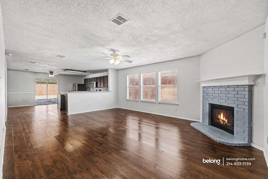 Clean lines, dark cabinetry, and an open kitchen anchored by a central island define this modern space built for streamlined living. Hard surface flooring runs throughout the main areas, while the kitchen pairs sleek counters, a full stainless appliance suite, and generous storage that keeps everything visually calm and organized. The living and dining areas connect naturally to the kitchen, creating a layout that supports both daily routines and casual gatherings. Overhead lighting and ceiling fans add comfort, while heat and central A/C keep the interior comfortable year-round. Sliding doors extend the living space outdoors, offering easy access to the yard. Four bedrooms and two baths provide flexibility for a variety of living arrangements, whether you need dedicated sleeping quarters, a home office, or space to unwind. Each area maintains the same clean, modern aesthetic seen throughout the main living spaces, allowing you to settle in without visual clutter. Located in Little Elm, this home sits close to everyday conveniences and outdoor escapes. Nearby options include H-E-B, Walmart, and local shopping and dining in neighboring Frisco. Lake Lewisville, Beard Park, and The Cove at The Lakefront offer recreation, trails, and waterfront activities just minutes away, while nearby road access makes commuting and errands straightforward. *Our homes come as-is with all essentials in working order. Want upgrades? Request it through the Belong app, and our trusted pros will take care of the rest!