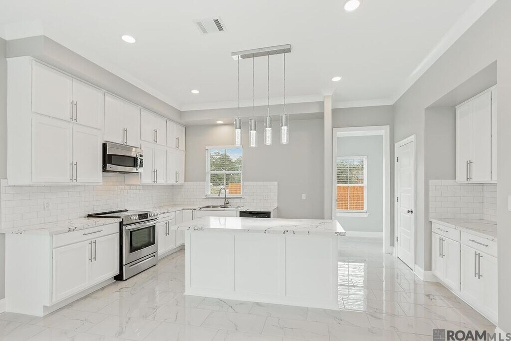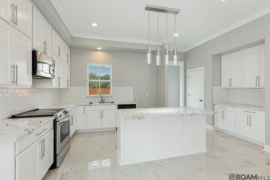 MOVE IN READY! Fields Creek is a New 56 lot Development in the fast growing and convenient area of Coursey Blvd and Jones Creek. This 3bd/2ba floorplan offers a well-designed open floorplan layout with ample space for living and storage. Kitchen features beautiful ceramic tile floors, shaker cabinetry, rich Quartz counters and an oversized Quartz Island overlooking breakfast and family room. The split plan allows privacy for Master Suite - with recessed lighting, boxed ceiling 10ft and a beautiful master bath with cathedral ceilings, separate shower, soaker tub and granite counters! Updated and modern décor throughout. No carpet anywhere in the home. 2 car attached garage with landscaping and too many amenities to list them all. Schedule your private viewing today!!