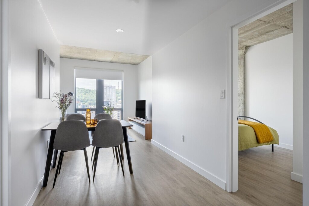 Experience elevated urban living in this Dorchester Signature Two-Bedroom apartment, where contemporary design meets ultimate comfort. This spacious two-bedroom apartment is thoughtfully crafted for modern lifestyles. With large floor-to-ceiling windows, natural light fills every corner, highlighting the elegant finishes and open layout. Each bedroom offers a cozy retreat with ample storage, while the stylish living and dining areas create the perfect space for relaxation or entertaining. The fully equipped kitchen boasts sleek appliances, ideal for preparing gourmet meals, and the modern bathroom features a refreshing walk-in shower and quality fixtures. Designed for short-term and long-term stays, this luxurious two-bedroom apartment provides the perfect blend of comfort, convenience, and style in the heart of Montreal. Mid-stay cleaning is available for your convenience at a rate of $70 per hour. Lockers are available on demand for an additional charge of $30. The Indoor Pool, Terrace, Gym, Pool Table, and Co-working Space are exclusively for the use of registered guests. Additional amenities available upon request include a First Aid Kit, Espresso Machine, Hair Dryer, Reading Lamps, Iron and Ironing Board, Extra Pillows and Blanket, Storage Space, and Vacuum Cleaner. Located in the vibrant downtown core, this apartment places you at the center of Montreal's best. Steps from Sainte-Catherine Street, you'll discover an array of trendy boutiques, diverse dining experiences, and lively nightlife. Culture enthusiasts can explore nearby attractions like the Montreal Museum of Fine Arts, while students and professionals benefit from the proximity to Concordia University and McGill University. Outdoor lovers will appreciate easy access to Mount Royal Park, an urban oasis perfect for hiking, jogging, or simply unwinding amidst nature. The Quartier des Spectacles, known for its year-round festivals and entertainment, is just a short distance away, offering endless opportunities for fun. With metro stations and public transit options within walking distance, you’ll enjoy seamless connectivity to the rest of the city, making every outing effortless. Cats are welcome upon request, but no other pets are allowed. Designated smoking areas are available outside the building, and smoking is not permitted inside the property. The property is equipped with 24-hour security. A pre-check-in form is required to confirm your identity and arrival details.