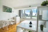 Welcome to a stylish studio apartment in the heart of Montreal, where comfort meets convenience. This open-concept apartment features large windows that flood the space with natural light and thoughtful furnishings that blend functionality with modern aesthetics. Relax in a cozy sleeping area with a plush bed, prepare meals in a fully equipped kitchenette, and enjoy your morning coffee with stunning city views. The contemporary bathroom is well-appointed with both a bathtub and a powerful shower, providing an option for a soothing soak or a quick refresh. This apartment is part of a community-focused building enriched with premium amenities to elevate your lifestyle. Residents have access to a fully equipped gym, an inviting indoor pool, a billiards room, and a quiet study area for work or study sessions. For your convenience, a spacious laundry area ensures all your needs are met under one roof, making it perfect for both short-term getaways and long-term stays. Mid-stay cleaning is available for your convenience at a rate of $70 per hour. Lockers are available on demand for an additional charge of $30. Additional amenities available upon request include a first aid kit, espresso machine, hair dryer, reading lamps, iron and ironing board, extra pillows and blanket, storage space, and vacuum cleaner. Located in the heart of downtown Montreal, this apartment places you in one of the city's most dynamic neighborhoods. Just steps away, Sainte-Catherine Street offers a bustling array of shops, trendy cafes, and fine dining options. Cultural landmarks like the Montreal Museum of Fine Arts and Concordia University are within walking distance, perfect for those looking to immerse themselves in art and history. Outdoor enthusiasts can explore nearby Mount Royal Park, a serene escape for hiking, biking, or picnicking. The Quartier des Spectacles, famous for its year-round festivals and live performances, is also easily accessible. With multiple metro stations and public transit options nearby, you can seamlessly navigate the city and explore all that Montreal has to offer. Cats are welcome upon request, but no other pets are allowed. Designated smoking areas are available outside the building, and smoking is not permitted inside the property. The indoor pool, terrace, gym, pool table, and co-working space are exclusively for the use of registered guests, and additional visitors are not permitted in these areas. The property is equipped with 24-hour security. A pre-check-in form is required to confirm your identity and arrival details.