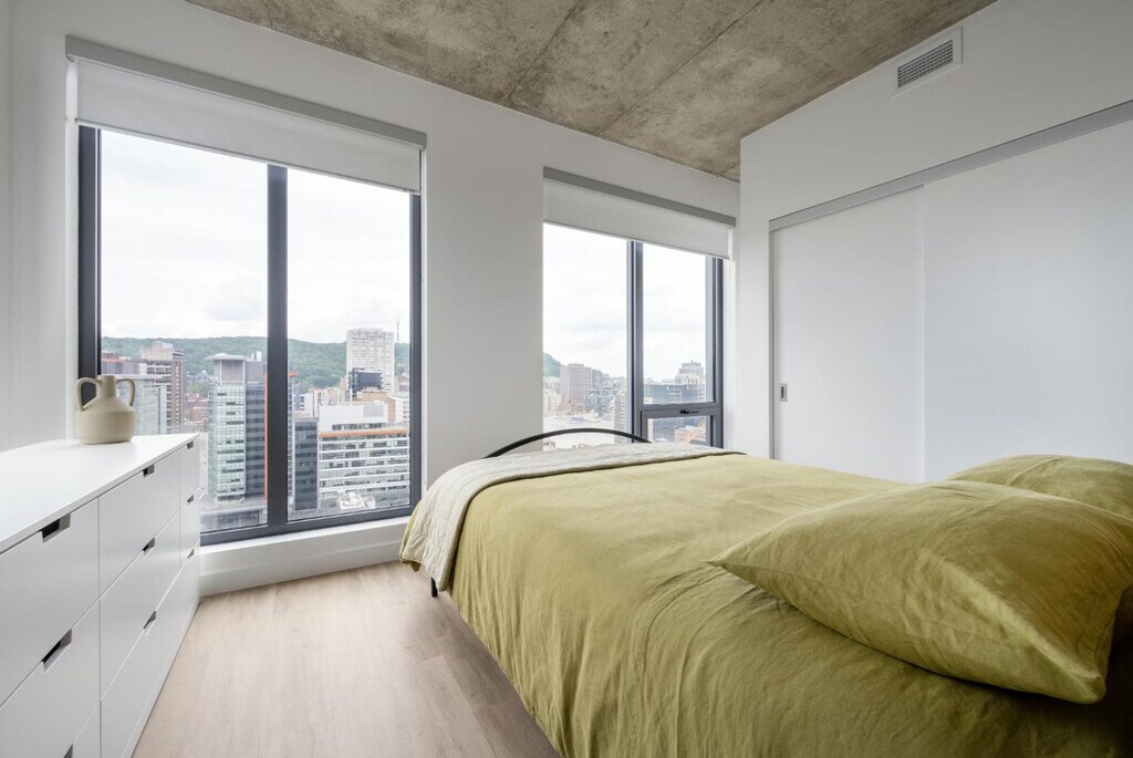 Experience modern comfort and urban convenience in this one-bedroom apartment located in the heart of downtown Montreal. The open concept layout maximizes space and natural light, with large windows offering vibrant views of the city. The tranquil bedroom provides a restful retreat with generous closet space, while the sleek living area is ideal for relaxing or entertaining. A fully equipped kitchen with contemporary appliances makes everyday cooking simple, and the stylish bathroom with a walk-in shower and refined tile finishes combines practicality with elegance. Whether you are visiting short-term or settling in for an extended stay, this apartment is tailored for business travelers, students, and leisure guests seeking a stylish home base. Mid-stay cleaning is available for your convenience at a rate of $70 per hour. Lockers are available on demand for an additional charge of $30. The indoor pool, terrace, gym, pool table, and co-working space are exclusively for the use of registered guests. Additional amenities available upon request include a first aid kit, espresso machine, hair dryer, reading lamps, iron and ironing board, extra pillows and blanket, storage space, and vacuum cleaner. Located steps from Sainte Catherine Street, you will be surrounded by boutique shopping, world-class dining, and cultural landmarks like the Montreal Museum of Fine Arts and Concordia University. Nearby, Mount Royal Park offers peaceful trails and panoramic views, while the Quartier des Spectacles delivers year-round entertainment. With excellent public transit access just minutes away, exploring the best of Montreal is easy and effortless. Cats are welcome upon request, but no other pets are allowed. Smoking is not permitted inside the property, but designated smoking areas are available outside the building. The property is equipped with 24-hour security. To rent this property, the minimum age requirement is 18 years old. When your booking has been confirmed, you will be asked to fill in a pre-check-in form to confirm your identity and arrival details. [SI]