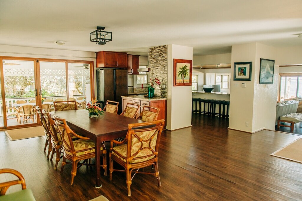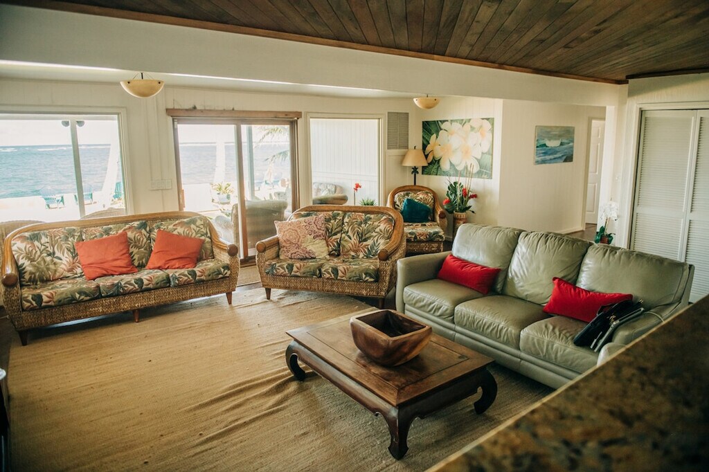Experience the Hawaiian lifestyle in this luxurious four-bedroom house featuring cozy queen beds and restful king-size beds. Enjoy spacious living areas with a large flat-screen TV and a fully equipped gourmet kitchen. The private patio offers outdoor living, and you have direct beach access from the backyard. Free parking is available for easy exploration of the island. Welcome to your Hawaiian oasis, a luxurious beachfront property that promises an unforgettable escape. This serene four-bedroom house is designed for comfort and relaxation, with cozy queen beds and spacious living areas. Experience the ultimate luxury of direct beach access from your own backyard, where you can step onto the soft, white sands and let the soothing sounds of the waves be your constant companion. The fully equipped gourmet kitchen with modern appliances, including a refrigerator, dishwasher, oven, microwave, and coffee maker, is ready for your culinary adventures. Free parking is available for easy exploration of the island. Local attractions include Laie Point State Wayside, Kualoa Regional Park, James Campbell National Wildlife Refuge, and the Polynesian Cultural Center. Conveniently located near public transport, with a bus stop just a 5-minute walk away, taxis are readily available in the area. The property offers easy access for vehicles, and car rentals are available within a 5-minute drive. Driving to Honolulu takes approximately 40 minutes. The house is located in a residential area, so guests are asked to be mindful of neighbors and maintain a peaceful environment. All guests must be accounted for in the reservation, and any extra guests not disclosed before arrival will lead to an immediate termination of the reservation with compensation sought for any damages found upon inspection. No parties or events are allowed, and quiet hours start at 9:00 pm. Outside music is not allowed at any time. This is a smoke-free and drug-free environment, and any violations will result in immediate termination of the reservation with compensation sought for any damages found upon inspection. Pets are not allowed in this rental unit. Please ensure to check out on time to avoid a $50 late check-out fee. Guests take full responsibility for any accidents, injuries, or illnesses that occur while on the premises. Energy conservation is encouraged by turning off air conditioning, lights, fans, and other non-essential appliances when leaving for the day. Guests are asked to refrain from engaging in conversations with neighbors to ensure a comfortable and peaceful stay. High-speed Wi-Fi is available, and smart TVs offer various streaming options for entertainment and connectivity.