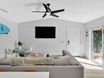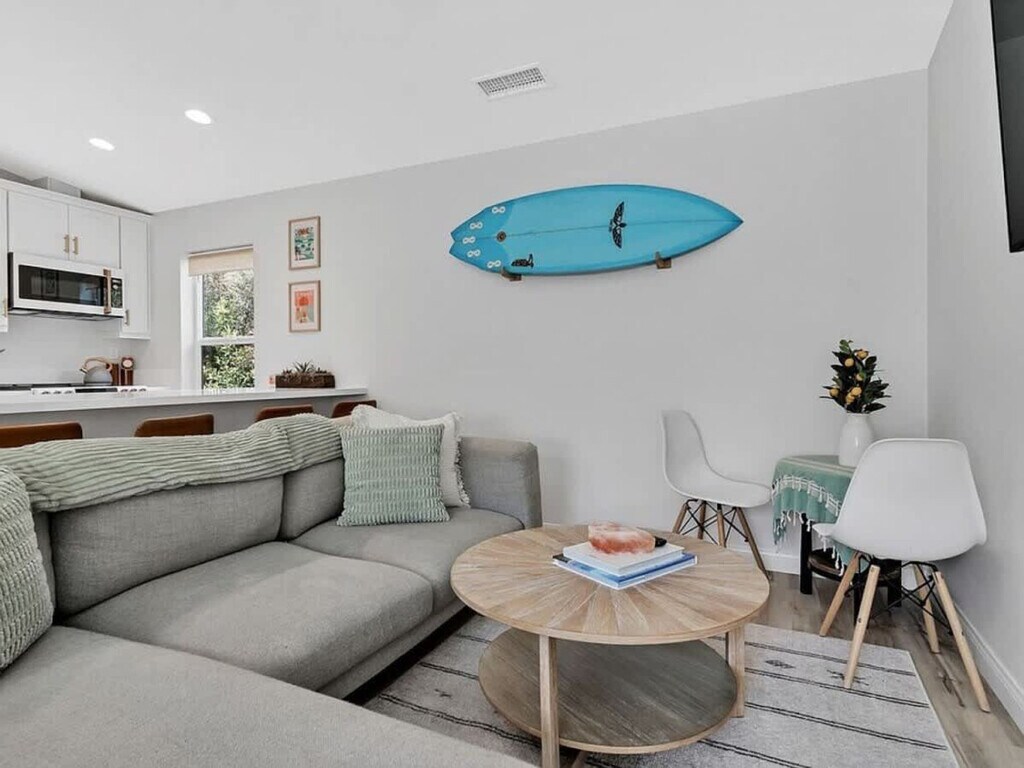 The advertised rate of $3,780/month is the lowest available price, based on a 30 day(s) stay with a move-in date of May 18, 2026. Rates vary depending on the duration of stay, season, and other parameters. For exact pricing and additional pricing components, please visit our website and enter your desired move-in and move-out dates. The rate is applicable when billed upfront; it can be higher if billed in multiple payments. Feel at home in The Quaint Cardiff Hideaway, a newly constructed home hidden off a private gravel road in the heart of Cardiff-By-The-Sea. This home features brand new GE Cafe series appliances, a brand new Samsung washer/dryer, beachy light wood floors, warm white walls, and tons of natural Southern California light. Comfortable beds with fresh, beachy linens, a 65” TV, and an L-shaped couch provide maximum seating. The fully stocked kitchen includes pots, pans, dining necessities, a cutting board, basic spices, k-cups, a lighter, and scissors. Bathrooms include shampoo, conditioner, and body wash. Air conditioning and heat keep you comfortable in every season, and ceiling fans are in every room. Outside, you'll find front decks, an outdoor dining set, an outdoor bistro set, and a turf yard with a gorgeous jacaranda tree, the perfect setting for dining al fresco. Pets are welcome and must be leashed and within the designated fenced area. Cardiff is a tiny surf community nestled in stunning North County San Diego, serving as a complete escape while also providing access to the coast highway, I-5 freeways, beaches, bike trails, and the Pacific Surfliner. Once you've settled in, there's tons to explore in the surrounding area without ever having to hop in a car. The largest community park in Encinitas is right next to the house, and a 5-minute walk brings you to the park's entry gates. At the bottom of the hill is the Cardiff Glenn nature preserve, a beautifully bio diverse preserve with a nature trail surrounded by bright, gorgeous flowery plants and trees. Parking on Warwick is really simple, and there is always availability. Scripps Memorial Hospital Encinitas is less than a mile away. Includes a desk with a lamp and all the plugs you might need to keep you charged up. [SI]