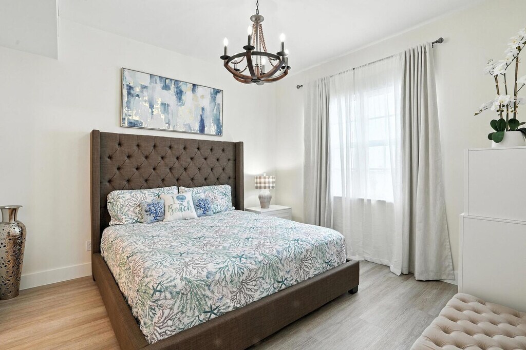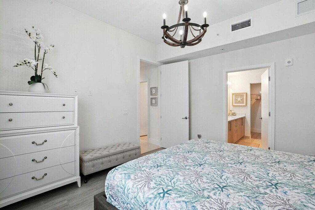 Welcome to your perfect coastal oasis! This fabulous 3-bedroom, 2-bath condo is located just over 4 miles from Margaritaville and Fort Myers Beach. With its split bedroom floor plan, tall ceilings, and on-site amenities including a pool and gym, this seasonal rental has it all. Situated on the 4th floor, this condo offers stunning lake views and soaring 10' ceilings, making it an ideal escape for extended stays. This beautifully designed condo features high-end finishes, furnishings, and chandeliers. With all bedrooms on one side of the unit and living areas on the other, you can enjoy both privacy and space to gather. Built in 2023, this property has never been lived in and is set up primarily for rental guests. The primary suite includes a king bed, large walk-in closet, and a spa-like en-suite bathroom with a glass-enclosed shower, dual sinks, and a wide vanity. Bedrooms 2 and 3 each have a queen-size bed, with Bedroom 3 also offering a home office set-up. The living room is equipped with a sofa, loveseat, coffee table, and large flat-screen TV, while the kitchen boasts a waterfall-edge center island, stainless steel appliances, and sleek European-style cabinetry. A full-size laundry room is conveniently located near the front entry. One covered parking space is included with this rental. Two beach chairs and a beach cooler are available for use at area beaches while staying at the condo. This home combines comfort and location in one of Fort Myers’ most desirable areas. You're just over 3 miles from Bunche Beach, a scenic stretch of shoreline on San Carlos Bay, perfect for shelling, kayaking, or simply enjoying the sunset. World-famous Fort Myers Beach is a little over 4 miles away. Majestic Palms also places you in a prime spot for day trips and island adventures, located halfway between the Cape Coral Bridge and the Sanibel Causeway, giving you easy access to shopping, dining, and some of Southwest Florida’s best beaches. Pets are not allowed. This is a self check-in property, and you will receive the codes to check in once we have received the full payment and HOA approval. Important house rules include quiet hours between 22:00 and 8:00. It is best to have a vehicle with you as Fort Myers, FL is a large metro area. The Fort Myers International Airport is a quick 25-minute drive from the home. Includes a home office set-up with twin nightstands with lamps and a generous closet in Bedroom 3. A laptop computer is not included. Registration Number: Florida state permit number: #CND2103205