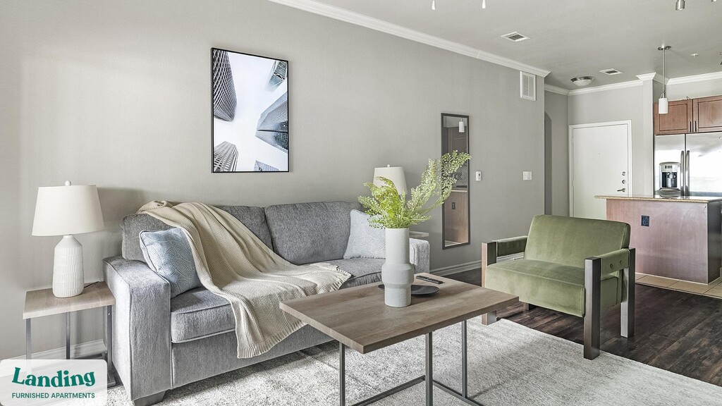 Landing offers flexible lease terms from weeks to months. Please always visit our website or contact us for the latest pricing & availability. Stay longer, save more: 6-Month Minimum base rent: starts at $1944/mo 12-Month Minimum base rent: starts at $1944/mo Landing offers flexible leases across a network of over 35,000 fully-furnished apartments throughout 375+ cities so you can rent on your terms, practically anywhere, and avoid the hassle of paying deposits or application fees. Visit to learn about all the benefits of a Landing membership, see our competitive up-to-date pricing, explore available apartments, take virtual tours, and make reservations online without jumping through traditional rental hoops. Landing's apartments at Cortland Addison Circle are designed for comfortable, easy living, with the ability to stay as long as you like. Experience living with Landing Every apartment is outfitted with all the modern essentials including: custom-designed furnishings, a fully-equipped kitchen with deluxe stainless steel appliances, a gourmet coffee maker, premium linens, Smart TVs, and incredibly fast, reliable internet for working from home. When you live with Landing, you'll enjoy a hassle-free experience with the added benefit of 24/7 access to our dedicated member experience team. Some of the nitty-gritty: a background check and proof of income are required; we're completely smoke-free; bundled utility packages and pricing vary based on length of stay; pet-friendly options available; listed price reflects a 12-month minimum stay.
