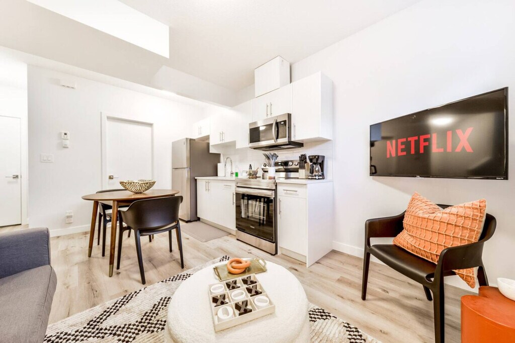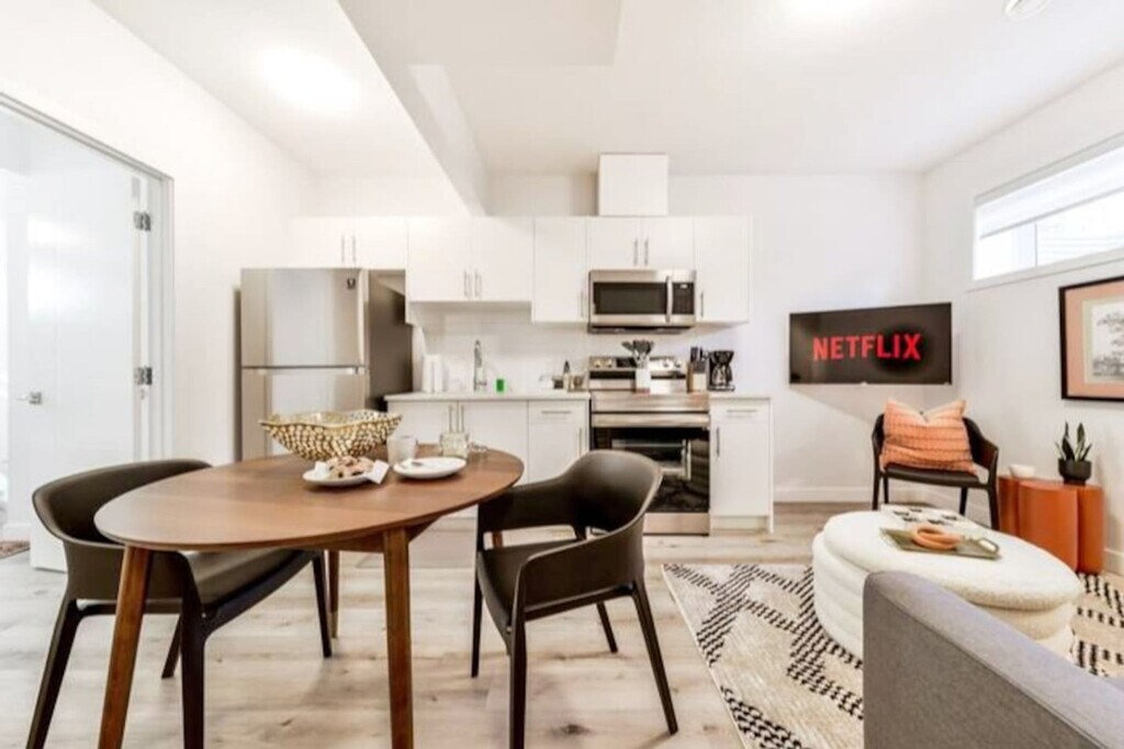 Feel at home in this private and cozy 1-bedroom basement suite, located minutes from Downtown, the University, and West Edmonton Mall. Inside, you can enjoy your favorite shows with access to Roku TV or work remotely with fast Wi-Fi. The fully stocked kitchen features brand new stainless steel appliances such as a microwave, fridge, stove, and dishwasher, along with glasses, mugs, dishes, and cutlery. This home comfortably sleeps 2 and includes 1 king-size bed complete with fresh sheets. The suite also has 1 full sparkling clean washroom with complimentary soap, shampoo, and body wash, complete with a shower, sink, and toilet. Complementary tea and coffee are provided. The Glenwood neighborhood in Edmonton, Alberta, is a vibrant and diverse community located in the northwest part of the city. The nearby River Valley offers a variety of recreational activities such as hiking, biking, and fishing. West Edmonton Mall, one of the largest malls in North America, is located just a short drive away and features over 800 stores and attractions. The neighborhood also has a number of local shopping centers and restaurants offering a range of cuisines and dining experiences. Step out from your home and you'll be greeted by a short walk to the Mayfield Common and plenty of walking paths nearby. Only a short drive away is the Misericordia Hospital, University of Alberta, West Edmonton Mall, Downtown, and all sorts of fun activities such as the river valley and parks to spend your day at. This is a basement suite, and while efforts are made to minimize noise and tenants adhere to quiet hours, occasional footsteps may be heard due to its nature. Quiet hours are from 10 PM to 7 AM, and a $500 fee will be charged if there is evidence of any unauthorized events or parties on the property at any time. Pets are not permitted in the home, and a minimum $250 fee will be charged if there is evidence of any unauthorized pets in the property and may increase to cover additional cleaning or damages. Strictly no smoking, vaping, or illegal substances are allowed inside the property. Violations incur a minimum $400 fee, with additional cleaning charges if damage or lingering odors are found. Unauthorized guests will be asked to leave, and unregistered guests will incur a $40 fee per person per night. A $50 fee will apply if you check out more than 30 minutes past the scheduled time without prior notice or approval, with an additional $50 charged for every subsequent 30 minutes up to 2 hours. Where applicable to properties using physical keys or access fobs, a $250 fee will apply for any items that are lost, damaged, or not returned after checkout. Registration Number: 450541086-002 [SI]