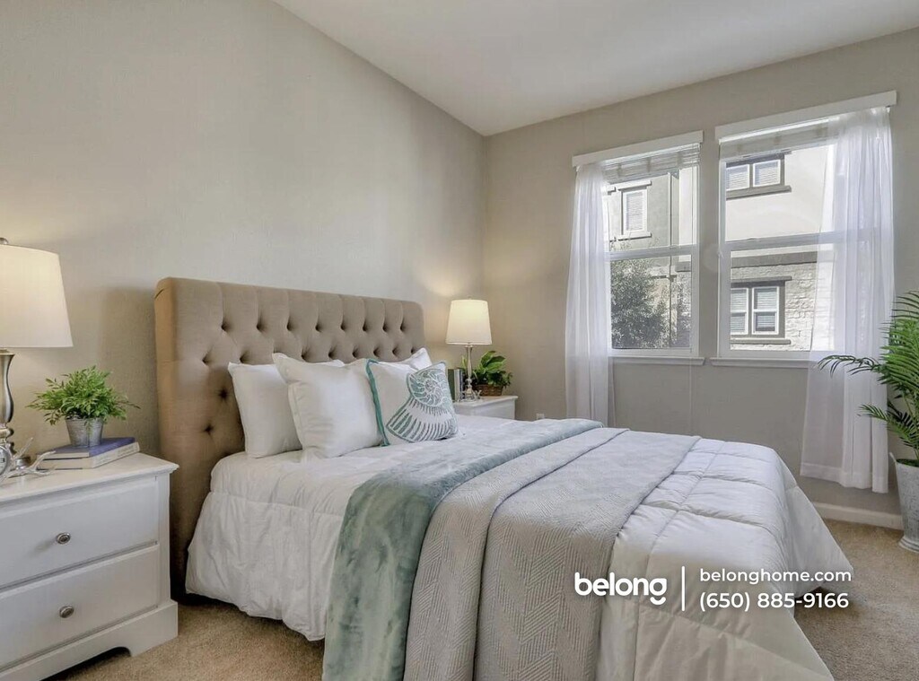 A rare east-facing 4-bedroom, 4-bath townhouse offering 2,077 square feet, built in 2015 and positioned directly across a greenbelt, park, and playground! Bright interiors, thoughtful upgrades, and a layout that gives each space purpose - all set in one of Milpitas’ most sought-after communities. Living areas feel open and bright, with large windows drawing in heaps of natural light. The layout keeps movement easy and intuitive - space to relax, space to gather, space to spread out. A dedicated reading nook sits right where the light hits best. Quiet mornings and afternoon resets done right. The kitchen is equipped with pre-designed cabinetry that adds real storage without sacrificing flow. Dining sits naturally alongside, ready for everyday meals or hosting. Thoughtful upgrades show up where they matter - built-in storage, clean organization, and a setup that works. All four bedrooms come with access to a bathroom, giving flexibility across the home. An in-built bathtub adds comfort, while the overall layout supports both privacy and shared living. The garage includes additional cabinets, keeping things streamlined and out of sight. Set in one of Milpitas’ most desirable communities, this home faces a greenbelt, park, and playground. Great Mall, Trader Joe’s, Starbucks, and nearby temples are all within walking distance. Commuting stays simple with access to BART, I-880, I-680, and San Jose International Airport. Zoned for highly rated schools including Mabel Mattos Elementary School, Rancho Milpitas Middle School, and Milpitas High School. *One pet allowed. Zillow deposit for this Belong home includes the $500 pet fee in case of pets. *Our homes come as-is with all essentials in working order. Want upgrades? Request it through the Belong app, and our trusted pros will take care of the rest!