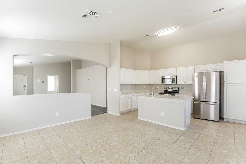 Please note, our homes are available on a first-come, first-serve basis and are not reserved until the holding fee agreement is signed and the holding fee is paid by the primary applicant. Coming soon! This home is currently being enjoyed by another resident but will be available soon. Please respect their privacy and do not disturb. You can complete the application process and reserve this home for a $500 non-refundable holding fee until it's ready for move-in. This fee must be paid within 24 hours of being pre-qualified and will be applied to your first month’s rent if you enter into a lease for this home. Harness the best of Arizona living with this four-bedroom, two-bathroom Goodyear rental home. Natural light floods the living room, also offering neutral vinyl plank flooring and soaring ceilings. The bright eat-in kitchen boasts tile flooring, stainless steel appliances, white quartz countertops and a large island with room for seating. A walk-in closet with built-in shelving and a private bathroom are highlights of the master suite. Be sure to spend time in the meticulously landscaped fenced-in backyard with a covered patio as you tour this beauty. This recently renovated and move-in ready home will go fast, so call us soon to book your tour.