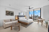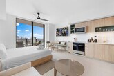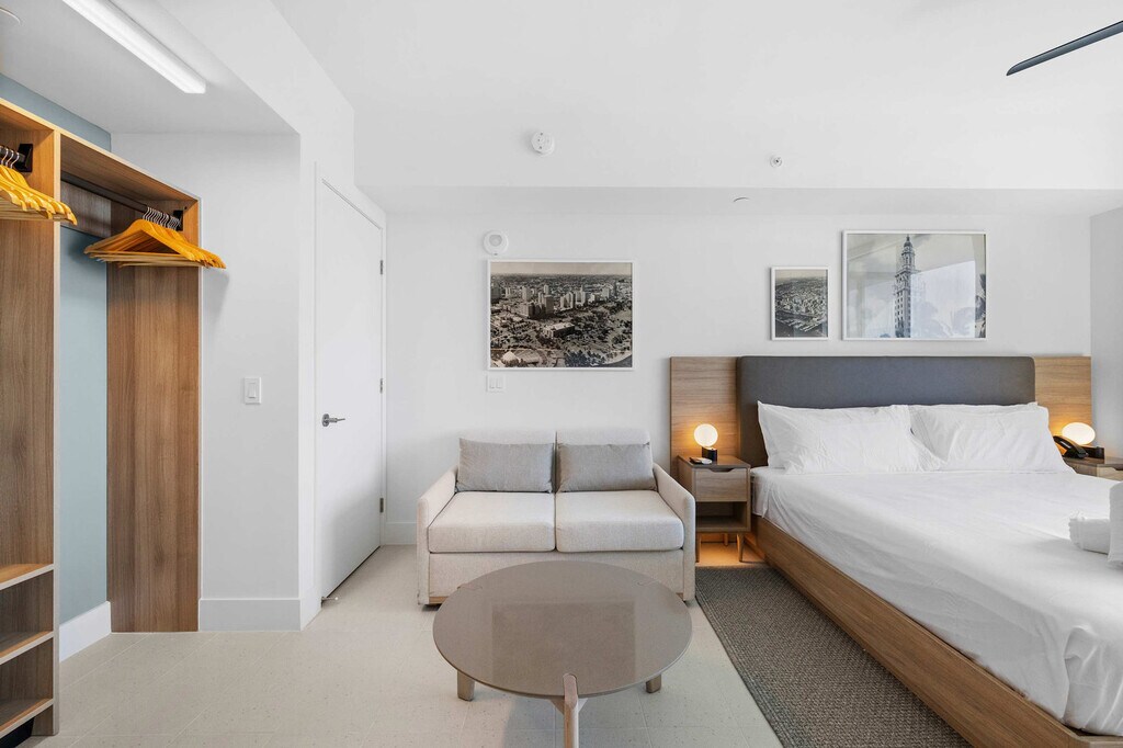 Experience unmatched luxury in this stunning studio located right in the heart of downtown Miami. Enjoy breathtaking city views from your private balcony and feel at home in this beautifully designed space. This studio maximizes its open space with a cozy sofa and modern style, perfect for relaxation. Step outside to your own balcony with comfy chairs, ideal for morning coffee or watching the city lights at night. Sleep well in the comfy king-size bed, and stay connected with fast Wi-Fi, perfect for work or streaming. The fully equipped kitchen allows for easy cooking with modern appliances, and the spacious bathroom features a tub and modern fixtures. The spa and wellness services come with an additional cost. There is a daily resort fee of $37.45, payable at the front desk during check-in. Valet parking rates are $43 for 0-4 hours, $75 for 4-24 hours, with an additional $15 fee for oversized vehicles. Any extra hotel services such as spa and dining must be paid immediately at the point of service. Step outside and you’re just moments away from top attractions like Kaseya Center, Bayfront Park, and a diverse selection of restaurants, shops, and cultural sites. Enjoy easy access to popular events like the famous Ultra Music Festival. The neighborhood offers walkable access to Miami’s top attractions, including Bayside Marketplace, Bayfront Park, and Museum Park. With the MetroMover Station just steps away, exploring Downtown Miami and Brickell is convenient without a car. Check-in is available until 12 AM, and early check-in is subject to availability with an additional fee. This is a smoke-free property, and smoking is strictly prohibited, with severe fines for violations. Quiet hours are between 22:00 and 8:00. Reservations must be made by a person aged 21 or older, and the reservation holder must be present throughout the stay. Standard check-in is at 4:00 PM, and check-out is at 11:00 AM. Late check-out is available until 12:00 PM for an additional $50, subject to availability. A $300 fine applies for smoking violations. Stay connected with fast Wi-Fi, perfect for work, streaming, or video calls. The small dining table is perfect for two people to eat or work. [SI]