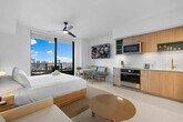 Located on a high floor in Downtown Miami, this modern studio offers stunning city views from a private balcony. Feel at home with a plush king-size bed, a fully equipped kitchen, fast Wi-Fi, and a stylish design, ideal for solo travelers or couples. The building features a resort-style pool, gym, co-working spaces, and elegant lounges, providing the perfect mix of comfort, luxury, and convenience. This open-concept studio is thoughtfully designed to offer both comfort and style. Whether you're planning a romantic escape or a productive business trip, you'll find everything you need for a memorable stay in the heart of the city. Enjoy a private balcony with panoramic views, a king-size bed with in-room entertainment, a cozy sofa, a dining table for two, and a fully equipped kitchen with modern appliances. The spacious bathroom features a tub and elegant finishes for a refreshing experience. Guests can enjoy the convenience of free parking located just a short walk from the building. Valet parking is available with rates of $43 for 0-4 hours, $75 for 4-24 hours, and an additional $15 fee for oversized vehicles. Spa and wellness services are available at an additional cost. A daily resort fee of $37.45 applies and must be paid at the front desk during check-in. Enjoy walkable access to Miami’s top attractions, including Bayside Marketplace, Bayfront Park, Kaseya Center, Museum Park, and PortMiami. The apartment is steps away from Miami Worldcenter and the Adrienne Arsht Center. Business travelers will appreciate the proximity to the Miami Convention Center and key corporate hubs. With the MetroMover Station just steps away and the Brightline Station nearby, exploring the city is easy without a car. Miami International Airport is only about 15 minutes by car. Smoking is strictly prohibited on the entire property, including inside the unit and on the balcony, with a $300 fine for violations. Quiet hours are between 22:00 and 20:00. All guests must be registered, and the reservation holder must be present throughout the entire stay. Check-in is available until 12 AM, with early check-in and late check-out options available for an additional fee. Standard check-in is at 4:00 PM, and check-out is at 11:00 AM. A late check-out until 12:00 PM can be arranged for an additional $50, subject to availability. Failing to meet the checkout time may incur an extra night charge. The apartment does not provide washcloths, and any damages will result in additional charges.