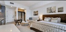 Experience luxury living in this stylish studio nestled in the heart of downtown Miami. Savor stunning panoramic city views from a sleek and modern building that perfectly combines elegance and comfort. Relax by the sparkling resort-style pool with private cabanas, recharge at the state-of-the-art fitness center, or treat yourself to a calming massage at the on-site spa. Discover comfort and style in this open-concept studio, designed to make every stay unforgettable. Step onto your private balcony and soak in breathtaking city views. Sleep soundly on a plush king-size bed, unwind in the cozy living area with a chic sofa, cook up your favorites in the fully equipped kitchen with premium appliances, and refresh in an elegant and spacious bathroom. Your perfect urban escape awaits! The spa and wellness services come with an additional cost. There is a daily resort fee of $37.45 that must be paid at the front desk during check-in, and valet parking rates are $43 for 0 to 4 hours and $75 for 4 to 24 hours, with an additional $15 fee for oversized vehicles. Any extra hotel services such as spa and dining must be paid immediately at the point of service, and room charges are not allowed for these services. Step outside and discover the best of Miami—Miami Worldcenter, Kaseya Center, and Bayfront Park are all just moments away. Enjoy shopping, waterfront dining, and live entertainment at Bayside Marketplace, or explore culture and science at the Pérez Art Museum and the Frost Science Museum. With the MetroMover Station just steps away, you have quick and convenient transportation throughout Downtown Miami and Brickell. The high-speed Brightline train offers seamless travel between Miami and other major cities, and Miami International Airport is only about 15 minutes by car. Smoking is strictly prohibited on the entire property, including inside the unit and on the balcony. Violating this rule may result in a $300 fine. Guests are kindly asked to respect quiet hours and avoid loud noises as this is a residential building. No garbage accumulation is allowed, and designated trash containers must be used. Standard check-in is at 4:00 PM and check-out is at 11:00 AM. A late check-out until 12:00 PM can be arranged for an additional $50, subject to availability. Failing to meet the checkout time may incur an extra night charge. Reservations must be made by a person aged 21 or older, and the reservation holder's presence is required throughout the entire stay. All guests must be registered, and IDs must be presented at the front desk during check-in.