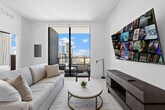 Discover luxury in the heart of Downtown Miami with this elegant apartment offering stunning city views and a rooftop pool. Perfect for getaways or business trips, experience the best of Miami in style with high-speed Wi-Fi and a prime location near top attractions. Enjoy free covered parking 24/7. Enjoy breathtaking views of Biscayne Bay and the Miami skyline from your private balcony. Relax in a luxurious king-size bed surrounded by floor-to-ceiling windows that fill the room with natural light. The spacious living area features a stylish sofa bed, large TV, and direct access to the balcony, perfect for relaxing or entertaining. Cook with ease using modern stainless steel appliances in the fully equipped kitchen. Unwind in a spacious bathroom with a bathtub, sleek shower, and premium fixtures for a spa-like experience. Guests can enjoy the convenience of free parking located just a short walk from the building. Valet parking is available with rates of $43 for 0-4 hours and $75 for 4-24 hours, with an additional $15 fee for oversized vehicles. Spa and wellness services are available at an additional cost, and a daily resort fee of $37.45 applies, payable at the front desk during check-in. With walkable access to Miami’s top attractions, you can enjoy shopping, waterfront dining, and live entertainment at Bayside Marketplace just 0.3 miles away. Bayfront Park, Kaseya Center, Museum Park, and PortMiami are all within a mile, offering a variety of cultural and recreational activities. The vibrant Brickell district and the iconic South Beach are also just a short ride away. The nearby MetroMover and Brightline stations provide convenient transportation options, making it easy to explore the city without a car. Smoking is strictly prohibited on the entire property, including inside the unit and on the balcony, with a $300 fine for violations. Quiet hours must be respected, and loud noises should be avoided as this is a residential building. Standard check-in is at 4:00 PM, and check-out is at 11:00 AM. Late check-out until 12:00 PM is available for an additional $50, subject to availability. All guests must be registered, and the reservation holder must be present throughout the entire stay. A daily resort fee of $37.45 applies and must be paid at the front desk during check-in. Only credit card payments are accepted. [SI]