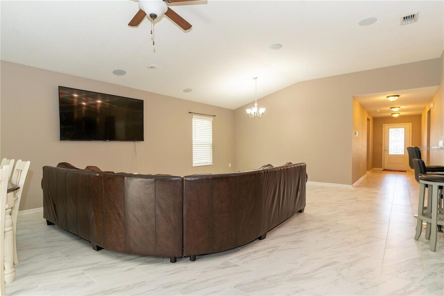 Welcome to Ormond Beach, a coastal town full of history and known for its pristine beaches. This 4-bedroom, 2-bathroom home, is nestled in the peaceful neighborhood of Hunter's Ridge. Its open floor plan seamlessly connects the living area, dining space, and updated kitchen. The kitchen comes fully equipped with granite countertops, stainless steel appliances, and an island with ample amounts of counter space. High ceilings and new flooring create harmony, which aids in making this space feel more inviting and spacious. The home neighbors a conservation area, offering green views from the rear screened in patio. HOA amenities include access to two community pools, a playground, tennis courts, a covered picnic area, and clubhouse. With easy access to the beach, this home combines coastal living with serene comfort. Ormond Beach is a haven for beach lovers, providing endless opportunities for sunbathing, swimming, surfing, and boating. Come check this home out today!