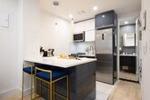 Welcome to this beautifully fully furnished renovated studio in the heart of the Upper East Side, offering the perfect blend of style and convenience. Fully furnished for a seamless move-in experience, this thoughtfully designed space features hardwood floors, a queen-size bed, and all the essentials, including linens, pillows, blankets, and towels. The open kitchen boasts ample counter space and cabinets, a washer-dryer combo unit, a dishwasher, and is fully stocked with dishes, utensils, and cookware, perfect for preparing meals with ease. The newly renovated standing shower adds a modern touch to the sleek bathroom. Unwind in the cozy living area with a 50” Smart TV and high-speed internet, making it easy to relax or work from home. Nestled in a prime Upper East Side location, this stylish studio is ideal for those seeking comfort and convenience. The Upper East Side is one of the most affluent neighborhoods in New York City, known for its luxury high-rise buildings, exclusive shops, and prestigious cultural institutions. The location of this apartment on 75th Street and 2nd-3rd Avenue puts it in the heart of this neighborhood. The area is home to many famous museums, such as the Metropolitan Museum of Art and the Guggenheim, as well as other cultural institutions like the Whitney Museum of American Art and the Jewish Museum. The neighborhood is also home to many high-end shops and designer boutiques, such as Louis Vuitton, Gucci, and Chanel. The area also boasts many excellent restaurants, cafes, and bars, catering to a variety of tastes and budgets. Some of the most popular include Cafe Boulud, Sushi Nakazawa, and the Carlyle Hotel's Bemelmans Bar. York Ave is located on the Upper East Side of Manhattan, New York City. The nearest subway station is the 86th Street subway station, which is served by the 4, 5, and 6 trains. The subway station is about a 5-minute walk from the apartment. Additionally, there are several bus lines that operate in the area, including the M15, M31, M86, and M96. These buses provide access to other parts of Manhattan, as well as other parts of New York City. Taxis and ride-sharing services such as Uber and Lyft are also widely available in the area. Smoking on the property is prohibited and will be subject to a fine up to $1,200. Pets are allowed only with prior approval by building management and an extra fee is incurred for approved pets. Be considerate of your neighbors and refrain from hosting parties. Make sure to turn off any electronic devices, lights, and AC when leaving the apartment. There is a $50 replacement fee for any lost keys.