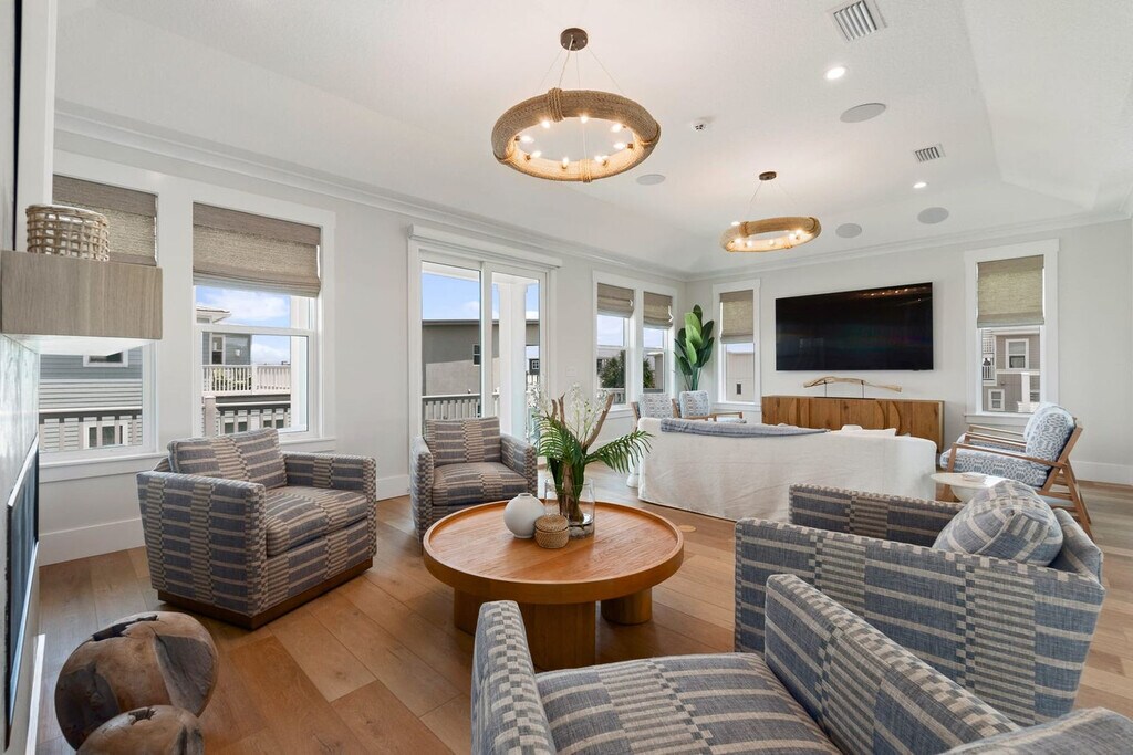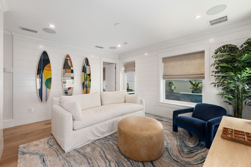 Stunning new construction luxury home on the east side of A1A, just steps from the sand, featuring five king bedrooms all with en-suite bathrooms, a bunk room, and a total of 6.5 bathrooms. Enjoy the convenience of an elevator, a heated pool and spa, and a roof deck offering panoramic views of St. Augustine Beach. The spacious third-floor living, dining, and kitchen area is perfect for entertaining, complemented by three balconies and a garage equipped with a ping pong table, beach gear, and an EV charger. This family-friendly home includes a high chair and pack 'n play. Welcome to this enchanting home, a 2024 Parade of Homes Winner for the $2.5 Million Category. The modern open-concept design includes an elevator, two living areas, a high-end kitchen, luxe king beds, and a resort-style yard with a heated pool, BBQ, and stunning ocean views from the balconies and sunny roof deck. The first floor features a plush sofa, cozy accent chairs, a queen pullout bed, and a built-in bunk bed made of two twins. A wet bar with an ice maker and wine cooler keeps your poolside drinks flowing. The second floor offers four spacious bedrooms with king beds, en-suite bathrooms, smart TVs, and private closets. The third floor boasts a bright, open-concept living area with a gourmet kitchen fully equipped with high-end appliances, a grand dining table, and a sleek marble breakfast bar. The garage includes an EV charger, and the home is equipped with a heated pool and spa. Family-friendly amenities include a high chair and pack 'n play. Located in St. Augustine Beach, just a few minutes from the public pier and an easy walk to top beachside restaurants. The home is a 10-minute drive to the historic downtown area of St. Augustine, offering old-world charm, flavorful dining, art and culture, and abundant entertainment. Enjoy local cafes and restaurants nearby, or leave the car parked and spend your days at the beach, then relax by the pool. The home has active security cameras installed at the front door, above the garage doors, and in the backyard/pool area. Tampering with or disconnecting the cameras may result in reservation cancellation and guest removal. Quiet hours are from 10 p.m. to 8 a.m. per St. Johns County ordinance. No parties, pets, smoking, or vaping are allowed on the property. Evidence of smoking or vaping will incur an additional cleaning fee of up to $500. Late check-outs and early check-ins are subject to a $100 per hour fee. The home is not child-proofed, and parents with younger children use the home at their own risk.