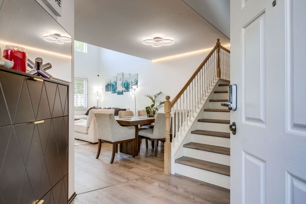 Welcome to this beautifully upgraded 3 bedroom, 2.5 bath home is located in the exclusive guard gated community of Coto De Caza. Step inside to a spacious living and dining room with soaring ceilings, large windows with plantation shutters, and an abundance of natural light. The upgraded kitchen features white cabinetry, sleek quartz countertops, and direct views to the backyard. Downstairs also offers a convenient laundry room, guest powder room, and direct access to the 2-car garage complete with epoxy flooring, and built-in storage cabinets.. Upstairs, you’ll find three comfortable bedrooms, each with custom built-in closet organizers. The primary suite showcases a beautifully upgraded bathroom with dual vanities, a walk-in shower, and a separate soaking tub. An additional full bathroom serves the secondary bedrooms. Enjoy indoor-outdoor living with a spacious backyard complete with a built-in grill — perfect for entertaining. Throughout the home, luxury vinyl flooring adds a modern and cohesive touch. Refrigerator, washer, and dryer are also included. As a resident of Coto De Caza, you’ll have the option to join the Coto de Caza Golf & Racquet Club, offering world-class amenities including golf, pickleball, pools, gym, and more — all within walking distance.