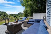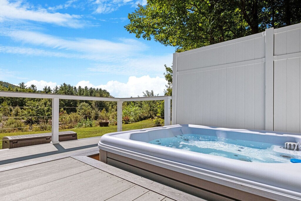 Discover pure luxury in this 5-bedroom, 3-bathroom riverfront property near Lincoln, NH. Nestled on a picturesque riverfront, this magnificent four-story retreat offers an exceptional escape in New Hampshire. Feel at home in this stylish retreat perfect for unforgettable New Hampshire adventures! Stepping inside, you'll discover an inviting expanse where the living room, fully equipped kitchen, and dining area meld into one. The outdoor spaces unveil a sanctuary with a luxurious hot tub and a grill area with an al fresco dining space. There is also a rooftop terrace, a fully functional office, a home gym, and two entertainment zones. Two well-behaved and house-trained dogs are allowed for a fee of $250 per dog. This gorgeous riverfront property is nestled by the picturesque Pemigewasset River in the heart of the White Mountains in South Peak near Lincoln, NH, just at the base of Loon Mountain. Winter invites endless fun on world-class skiing and snowboarding slopes, while the warmer months open doors to scenic hiking trails, exhilarating gondola rides, and refreshing kayaking and swimming in nearby rivers and lakes. Just minutes away, the charming town of Woodstock awaits with its quaint shops, cozy cafes, lively breweries, and exceptional dining options. For those eager to explore further, the location offers convenient access to Waterville Valley and Cannon Mountain. Some attractions you may want to visit during your stay are Alpine Adventures, Granite State Scenic Railway, Clark's Trading Post, Seven Birches Winery, Whale's Tale Waterpark, Loon Mountain Resort, Franconia Falls, Flume Gorge, Santa's Village and Story Land. It is recommended to arrive by car to explore and enjoy the beautiful New Hampshire. The closest airport is Manchester-Boston Regional Airport. Smoking inside the home will result in a $2,000 fee for odor removal and furniture cleaning. Parties and events are not allowed. Dogs must be well-behaved, fully house-trained, and kept on a leash while outside the property. Ensure that dogs are crated when alone in the house to prevent any damage and ensure their safety. Guests are responsible for cleaning up after their dogs, both inside and outside the property. Pets are not allowed on furniture and beds. Includes a workspace with a desk, chair, and lamp, as well as a book selection and a telescope. [SI]