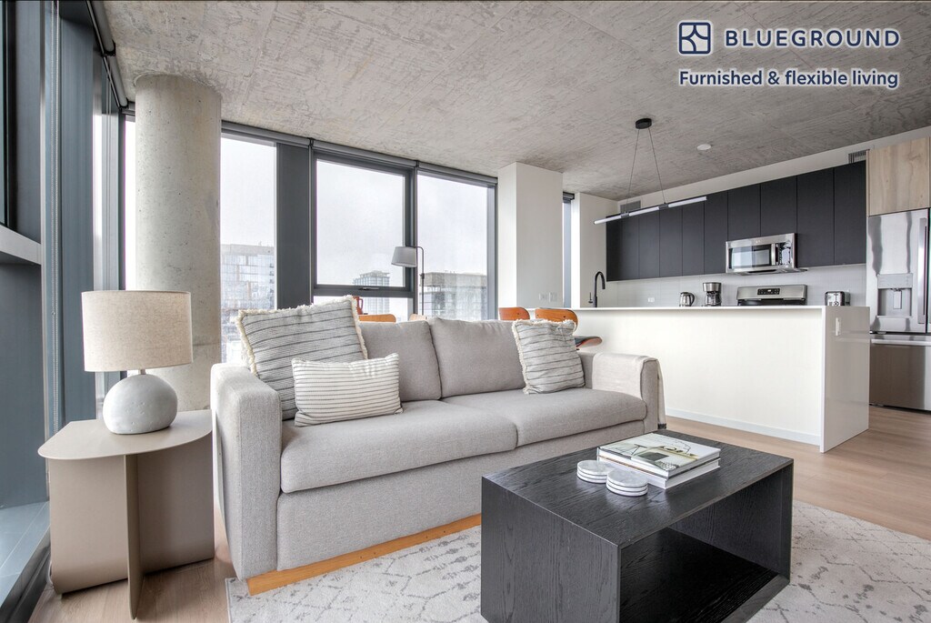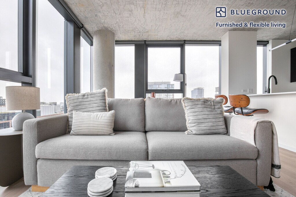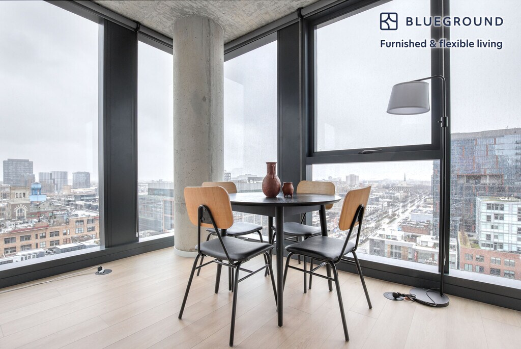 Show up and start living from day one in Chicago with this sophisticated two bedroom Blueground apartment. You’ll love coming home to this thoughtfully furnished, beautifully designed, and fully equipped Fulton Market District home with stunning views over the city. (ID #CHI1067) The advertised rate of $3,390/month is the lowest available price, based on a 2 month(s) and 29 day(s) stay with a move-in date of October 31, 2025. If you’re looking for a 1-year stay, the rate is $4,980/month. Rates vary depending on the duration of stay, season, and other parameters. For exact pricing and additional pricing components, please visit our website and enter your desired move-in and move-out dates. The rate is applicable when billed upfront; it can be higher if billed in multiple payments. Brokers are welcome to reach out. Were you looking for an unfurnished lease? Try Blueground instead and upgrade from unfurnished to furnished living: - Furnished at rates comparable to unfurnished - No setup or furniture costs - save thousands - Move-in ready - save time, just bring your suitcase Designed with you in mind As with any Blueground apartment, you’ll find a thoughtfully designed space complete with beautiful furniture and a fully equipped kitchen in this two bedroom property. And, thanks to our superior quality mattresses, luxury linens, and towels, you can relax knowing you’ll always feel comfortably at home. When you’re ready for some fun, you can take in the Chicago vibes or bring the entertainment to you with the premium wireless speaker or smart TV. This apartment also offers in-apartment laundry. Sleeping arrangements Queen Bed, 63in/160cm Queen Bed, 63in/160cm Amenities Building amenities unique to this two bedroom apartment include an on-site: - BBQ Area - Dryer - Elevator - Swimming pool - Washing machine Arrival and ongoing support The entire apartment is yours to enjoy! Throughout your stay, you’ll have access to our Client Experience team through the Blueground App. You can schedule additional cleanings, submit maintenance requests, and view our neighborhood recommendations with just a few taps. We’ll share all details upon confirmation of your stay. Other things to note Building amenities may have an extra cost. This Blueground apartment has flexible lease options, allowing you to book it for one month, a year, or more. We take great pride in ensuring every photo displayed is shot in our own units with our actual furnishings. That said, we regularly refresh our decor and furniture arrangement, which may differ from what’s pictured. Also note - This apartment is not located near public transportation - There have been reported instances of homeless populations nearby - This apartment is located in an industrial zone, so it can be noisy inside from time to time [PL]