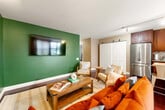Feel at home in this stylish and modern 1-bedroom, 1-bathroom condo in the heart of Old Town, Chicago. With elevator access, this apartment is perfect for a cozy and comfortable stay. This apartment features a spacious living area with a 65" TV and a plush king-size bed for ultimate relaxation. The fully stocked kitchen is ready for home-cooked meals, complete with cooking essentials, coffee, and tea. Enjoy top-tier entertainment with Smart TV's streaming (HBO Max, Netflix, Disney+, Hulu, and more), and refresh your wardrobe with the in-unit washer and dryer. You're only 5 minutes to Lincoln Park Zoo, 10 minutes to The Magnificent Mile, 15 minutes to Navy Pier, 12 minutes to Millennium Park, 15 minutes to The Art Institute of Chicago, and 15 minutes to Wrigley Field. Check-in is enabled via a tech-enabled system. [SI]