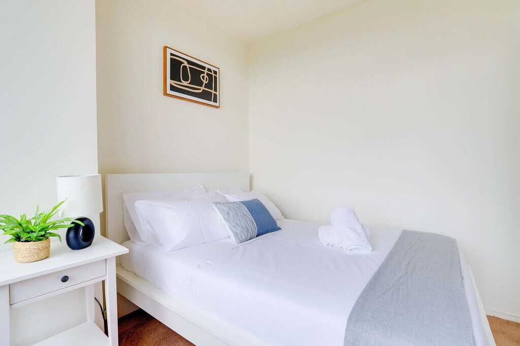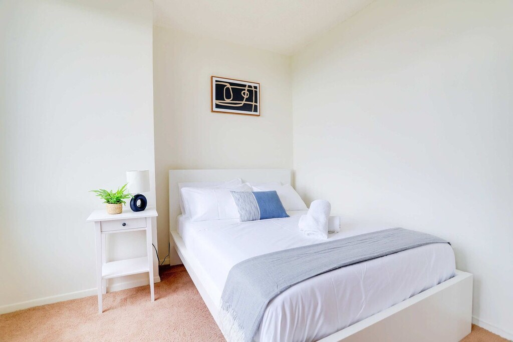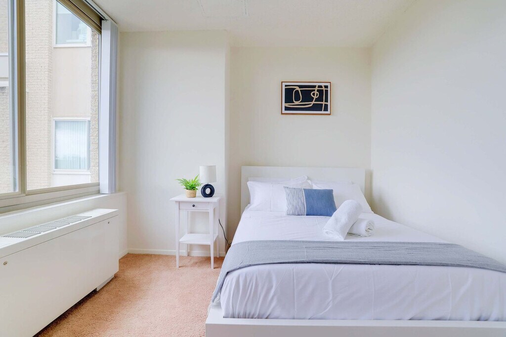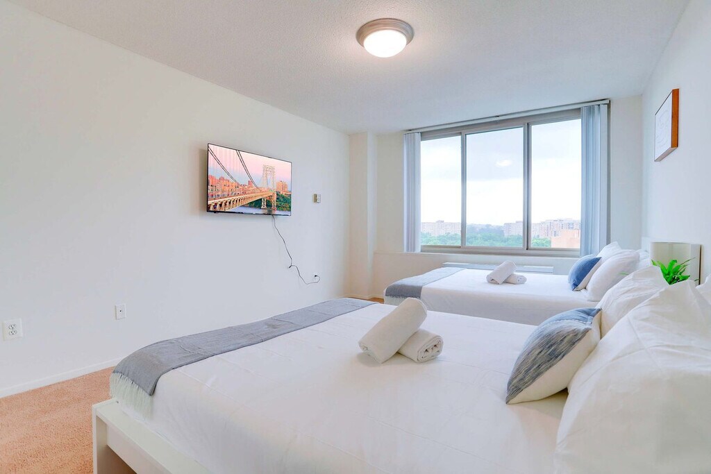 Feel at home in this stylish 2-bedroom apartment in the heart of National Landing. This apartment is your perfect home base for exploring Arlington and Washington, D.C. with incredible ease. Step into this bright and modern 2-bedroom, 1-bathroom apartment, thoughtfully designed for comfort and convenience. The spacious master bedroom features two comfortable queen-size beds, perfect for families or groups, while the second bedroom (den) offers a cozy and private space with a comfortable full-size bed. The comfortable living area provides a welcoming space with a TV, ideal for unwinding after a day of exploring. The kitchen is fully equipped with all the essentials you need to prepare meals. In-unit conveniences include a washer and dryer for a hassle-free stay. Parking is available; please display your parking permit at all times to avoid being towed. This apartment is in the heart of National Landing (Crystal City), a vibrant and well-connected neighborhood perfect for both business and leisure travel to the D.C. area. You're just a short stroll to the Crystal City Metro, connecting you to D.C.'s National Mall in minutes, and steps from premier shopping at Fashion Centre at Pentagon City. Great local dining options are within walking distance, including The Freshman, Enjera Restaurant, and Los Tios Grill. For fun bars and nightlife, visit Highline RxR and Freddie's Beach Bar. You are also just a few Metro stops from the National Mall and a short distance from Arlington National Cemetery. Getting around from this centrally located apartment is incredibly easy. You are just a 3-block walk from both the Crystal City & Pentagon City Metro Stations, putting all of D.C.'s landmarks at your fingertips. The Reagan National Airport (DCA) is just one Metro stop away, making for a stress-free commute. You are right next to the iconic 18-mile Mount Vernon Trail, perfect for a scenic bike ride, run, or walk along the Potomac River. For your convenience, a large and modern Whole Foods Market is located just a short walk away. Quiet hours are between 10:00 PM and 8:00 AM. All guests must be registered prior to arrival; the building requires a brief guest screening prior to check-in, and failure to provide the required information in advance may result in cancellation of the reservation, as per building regulations. Do not send packages to the property, as deliveries are not accepted or guaranteed. If the property is left in excessively poor condition, an additional cleaning fee will be applied. The building operates a centralized HVAC system in accordance with municipal regulations; heating runs from October 13 to May 1, while air conditioning is available from May 15 to October 1. During seasonal transitions, HVAC adjustments are managed by the building association based on outdoor temperatures. A $300 fine will be applied for smoking inside or hosting an unauthorized party. Unauthorized late check-out will result in a charge equivalent to one night’s stay. Lost FOB or access card: $250. Lost parking tag: $200–$300 (based on building rates). Stay connected with fast Wi-Fi, perfect for remote work and streaming. [SI]