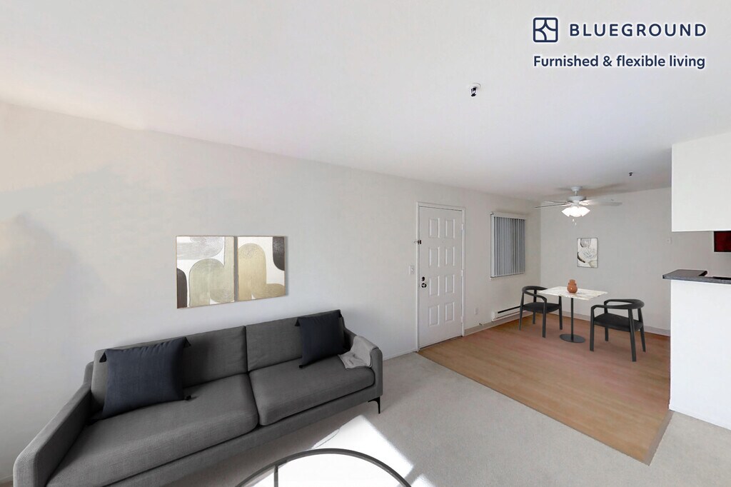Staged photos of matching layout and similar décor Imagery shows same floorplan and building, and similar décor as we finish photographing this new unit. Be the first to rent! Feel at home wherever you choose to live with Blueground. You’ll love this beautiful Shoreline West furnished one bedroom apartment with its modern decor, fully equipped kitchen, and exquisite living room. Ideally located, you’re close to all the best that Mountain View has to offer! (ID #SFO9456A) The advertised rate of $3,690/month is the lowest available price, based on a 12 month(s) and 30 day(s) stay with a move-in date of October 24, 2025. Rates vary depending on the duration of stay, season, and other parameters. For exact pricing and additional pricing components, please visit our website and enter your desired move-in and move-out dates. The rate is applicable when billed upfront; it can be higher if billed in multiple payments. Brokers are welcome to reach out. Were you looking for an unfurnished lease? Try Blueground instead and upgrade from unfurnished to furnished living: - Furnished at rates comparable to unfurnished - No setup or furniture costs - save thousands - Move-in ready - save time, just bring your suitcase Designed with you in mind As with any Blueground apartment, you’ll find a thoughtfully designed space complete with beautiful furniture and a fully equipped kitchen in this one bedroom property. And, thanks to our superior quality mattresses, luxury linens, and towels, you can relax knowing you’ll always feel comfortably at home. When you’re ready for some fun, you can take in the Mountain View vibes or bring the entertainment to you with the premium wireless speaker or smart TV. This apartment also offers in-apartment laundry. Amenities Building amenities unique to this one bedroom apartment include an on-site: - Dryer - Washing machine - Parking Arrival and ongoing support The entire apartment is yours to enjoy! Throughout your stay, you’ll have access to our Client Experience team through the Blueground App. You can schedule additional cleanings, submit maintenance requests, and view our neighborhood recommendations with just a few taps. We’ll share all details upon confirmation of your stay. Other things to note Photos show same floorplan and building, and similar decor as we finish photographing this new apartment. This Blueground apartment has flexible lease options, allowing you to book it for one month, a year, or more. Parking is offered based on availability and is subject to a fee. Please keep in mind that this is a walk up building. We take great pride in ensuring every photo displayed is shot in our own units with our actual furnishings. That said, we regularly refresh our decor and furniture arrangement, which may differ from what’s pictured.