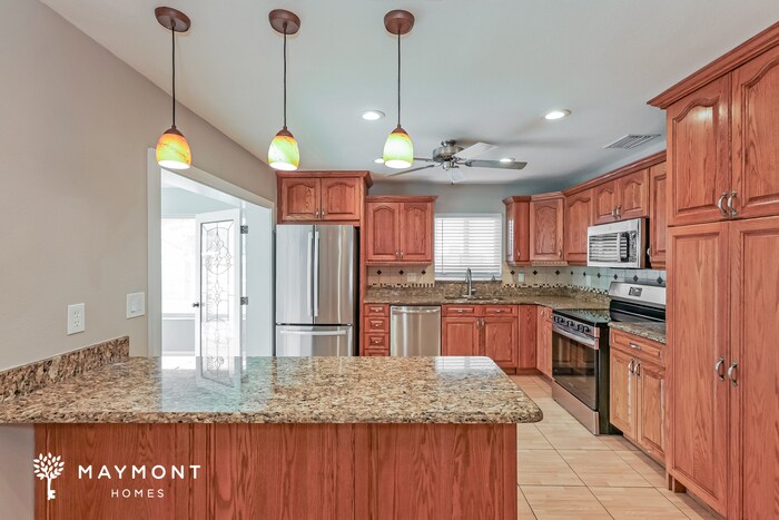 MOVE-IN READY This home is move-in ready. Schedule your tour now or start your application today. Monthly Recurring Fees: $20.00 - Smart Home $10.95 - Utility Management Maymont Homes is committed to clear and upfront pricing. In addition to the advertised rent, residents may have monthly fees, including a $10.95 utility management fee, a $25.00 wastewater fee for homes on septic systems, and an amenity fee for homes with smart home technology, valet trash, or other community amenities. This does not include utilities or optional fees, including but not limited to pet fees and renter’s insurance. Located in a sought-after area, this 3-bedroom, 2-bathroom home offers 1,865 square feet of comfortable living space equipped with smart home features, including a smart lock and thermostat. The living room greets you with vaulted ceilings and fresh LVP flooring that flows throughout, making each space feel open and inviting. The kitchen features granite countertops, stainless steel appliances, and rich wood cabinetry with plenty of storage. Eat-in kitchen, filled with natural light. The primary bedroom includes an en suite bath, while the additional bedrooms are generously sized with fresh finishes. Bathrooms are updated with tile accents and practical layouts. Step out to the screened-in patio with tiled flooring, perfect for enjoying the Florida sunshine or evening breezes in comfort. With its updated finishes, functional design, and close proximity to Orlando’s shopping, dining, and entertainment, this home combines convenience and charm. Don’t wait — apply now! *Maymont Homes provides residents with convenient solutions, including simplified utility billing and flexible rent payment options. Contact us for more details. This information is deemed reliable, but not guaranteed. All measurements are approximate. Actual product and home specifications may vary in dimension or detail. Images are for representational purposes only. Some programs and services may not be available in all market areas. Prices and availability are subject to change without notice. Advertised rent prices do not include the required application fee, the partially refundable reservation fee (due upon application approval), or the mandatory monthly utility management fee (in select market areas.) Residents must maintain renters insurance as specified in their lease. If third-party renters insurance is not provided, residents will be automatically enrolled in our Master Insurance Policy for a fee. Select homes may be located in communities that require a monthly fee for community-specific amenities or services. For complete details, please contact a company leasing representative. Equal Housing Opportunity. Estimated availability date is subject to change based on construction timelines and move-out confirmation. This property allows self guided viewing without an appointment. Contact for details.