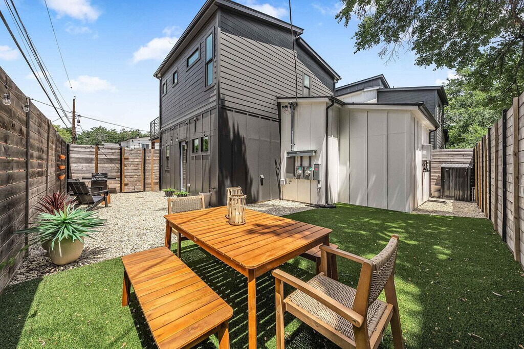 Feel at home in The Howdy House, a stylish 3-bedroom South Austin getaway. This thoughtfully designed home is located in a peaceful, walkable neighborhood just 15 minutes from downtown and SoCo. This property features layered textures, curated decor, and cozy spaces. The fully equipped kitchen includes a coffee bar, and a washer and dryer are available for your convenience. Enjoy the private fenced backyard with a BBQ grill, patio seating, and string lights. One small dog is allowed (30 lbs max) with a pet fee. Located in South Austin’s highly desirable 78745 zip code, The Howdy House sits in a quiet, residential neighborhood perfect for both relaxing and exploring. You’re just minutes from the buzz of South Congress, Zilker Park, Lady Bird Lake, and downtown Austin. Walk to neighborhood favorites like Jo’s Coffee, Radio Coffee & Beer, St. Elmo Brewing, Cosmic Coffee, and The Yard, or grab groceries at nearby Central Market and Sprouts. The home has easy access to South Lamar, Ben White (290/71), and I-35. Downtown is about a 15-minute drive, and the airport is just 20 minutes away. Uber and Lyft are widely available, and there’s ample free street and driveway parking. Quiet hours are from 10:00 PM to 10:00 AM. No commercial photography, parties, events, or large gatherings are allowed. Only registered guests are allowed on the property unless approved in advance. No Saturday check-outs. Dogs are not allowed on furniture, and a $150 cleaning fee applies if these rules are not followed. Pets must be on a leash when outside the property. No cats are allowed. Smoking or vaping inside the home is not permitted, and if signs of smoking are found indoors, a $200 cleaning fee will be applied. If the BBQ is not cleaned after use, a $75 cleaning fee applies. Includes dedicated workspaces and high-speed Wi-Fi. Registration Number: OL 2025 075658 [SI]