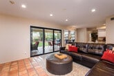 Welcome to Casa Kierland, a fully furnished 2-story single-family home located in the highly sought-after Kierland area of North Scottsdale. This spacious home features four bedrooms and two and a half bathrooms, providing ample space for relaxation and entertainment. The master bedroom includes a king-size bed, a flat-screen TV, and a workstation with a printer, while the other bedrooms offer a variety of sleeping arrangements to comfortably accommodate up to eight guests. The property also boasts a private pool with a child-safe view fence and an attached spa, perfect for enjoying the beautiful desert evenings. Casa Kierland offers plenty of indoor and outdoor entertaining spaces, including a family room with a large flat-screen TV, a fully stocked kitchen, and a separate living room with additional seating and entertainment options. The formal dining area can seat ten comfortably, and the glass sliding doors open to a large outdoor covered patio equipped with a stainless steel BBQ, a built-in wet bar with a full-size fridge, and a flat-screen TV. The patio is cooled by a misting system and ceiling fans, and an outdoor patio heater is available for cooler evenings. The property also includes a private garage, a 3-car driveway, and an RV gate. Guests can enjoy the private pool and spa, with an additional fee for heating. The pool and spa are heated using a propane heater, and guests are responsible for the propane used. A private garage is available for parking, along with a 3-car driveway and RV gate. One dog is allowed with approval, and a non-refundable pet fee will be added to your booking. All linens, towels, and paper products are provided, along with a fully stocked kitchen. Situated close to the shopping and dining at Kierland Commons, the Scottsdale Quarter, and the Westin Kierland Resort, Spa & Golf Club, Casa Kierland is centrally located to all the culture, nightlife, and natural beauty that the Valley of the Sun has to offer. This prime location ensures easy access to a variety of attractions and activities. Guests are liable for any damages caused to the property. The property provides free Wi-Fi and includes all linens, bath, and pool towels. Check-in and check-out times are flexible, and the property is equipped with a washer and dryer for your convenience.