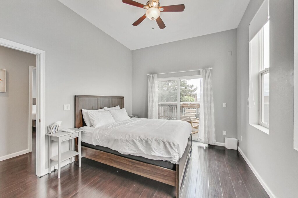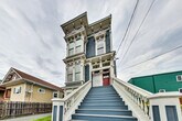 Situated in the up-and-coming West Oakland neighborhood, this home offers easy access to San Francisco via freeway or BART. Newly painted with beautiful hardwood floors and high ceilings, the house features a large open concept living, dining, and kitchen area, making it a comfortable home base for your vacation or work trip. The property is on the top level of a three-story house, requiring climbing a significant number of stairs, including a large flight from the ground level to the entry door and a long flight inside to the flat. The property is fenced and equipped with a gate with an electronic lock. The front of the unit boasts an open concept living, dining, and kitchen area, furnished to create distinct dining and living spaces. A sofa faces the UHD TV and is equipped with a Sonos sound system. The dining table seats four, with an additional sitting area behind the sofa providing two more chairs for larger groups. The shared bathroom is located at the top of the stairs next to the washer and dryer. The master bedroom, located at the end of the hallway, features a walk-in closet and an en-suite bathroom with a walk-in shower. The shared bathroom includes a shower over tub. Premium designer linens and towels, coffee and tea, and Kiehl's bath and body products are provided. Located in West Oakland, a historically working-class neighborhood, the area is filled with industrial warehouses, ornate Victorians, and new condo developments. The neighborhood's proximity to Emeryville, Berkeley, and San Francisco via the San Francisco–Oakland Bay Bridge and BART makes it a central location with warmer weather than San Francisco. Within walking distance, you'll find a lively farmer's market every Sunday morning, Kowbird fried chicken, Horn barbecue, Kilovolt coffee, and rock climbing at the old Pacific Pipe warehouse. The West Oakland BART station is about an 11-15 minute walk from the condo. Common sense is encouraged in this up-and-coming area, as surroundings can be dirty at times and there can be incidents of crime. Do not leave valuables in your car, and if your car has a trunk, leave the seats folded down to show the trunk is empty. Pay attention to your surroundings and avoid being distracted on your phone. A digital guidebook with information about the house and neighborhood will be sent with your check-in instructions. Enhanced cleaning and sanitation procedures have been implemented, which increases the total cleaning fee rate. [SI]
