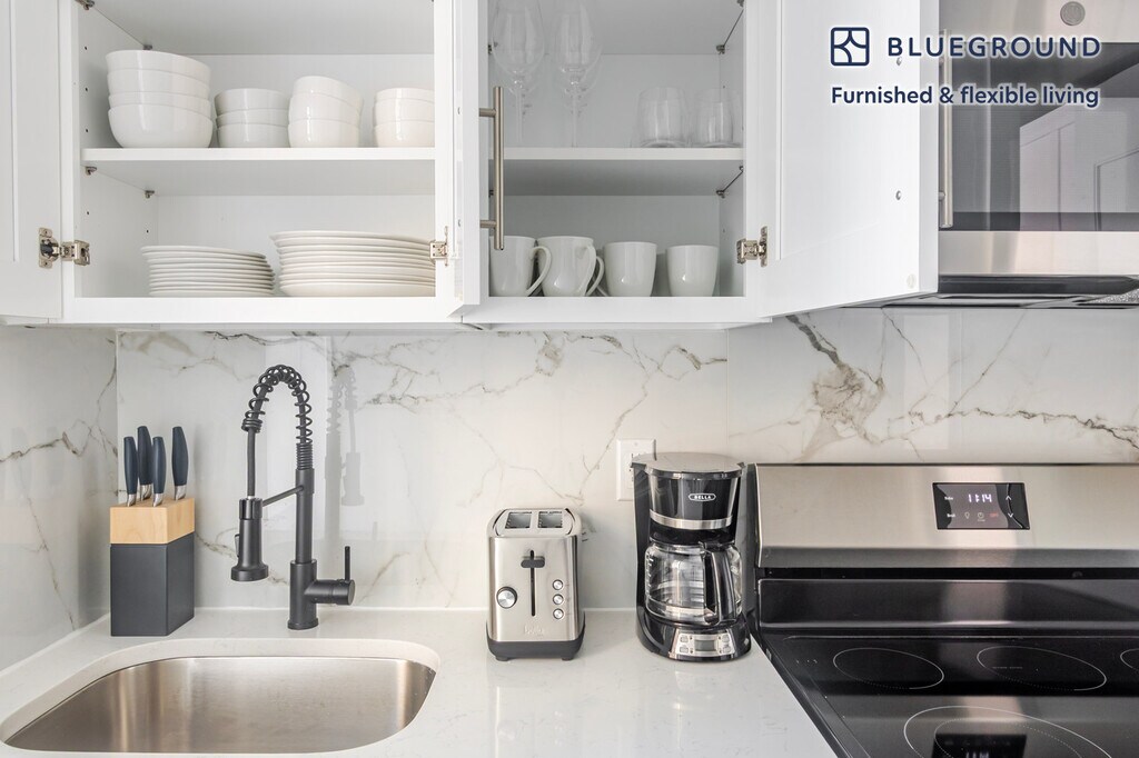Feel at home wherever you choose to live with Blueground. You’ll love this sophisticated Midtown West furnished two bedroom apartment with its modern decor, fully equipped kitchen, and roomy living room. Ideally located, you’re close to all the best that New York has to offer! (ID #NYC1853) The advertised rate of $4,410/month is the lowest available price, based on a 2 month(s) and 22 day(s) stay with a move-in date of October 30, 2025. If you’re looking for a 1-year stay, the rate is $5,210/month. Rates vary depending on the duration of stay, season, and other parameters. For exact pricing and additional pricing components, please visit our website and enter your desired move-in and move-out dates. The rate is applicable when billed upfront; it can be higher if billed in multiple payments. Brokers are welcome to reach out. Were you looking for an unfurnished lease? Try Blueground instead and upgrade from unfurnished to furnished living: - Furnished at rates comparable to unfurnished - No setup or furniture costs - save thousands - Move-in ready - save time, just bring your suitcase Designed with you in mind Gorgeous furniture, fully equipped kitchen, smart TV, and a premium wireless speaker are just a few of the amenities you’ll find inside this two bedroom apartment. Ideally located in New York, you’ll find a lot to love outside as well. When you’re ready to relax, you’ll be happy to discover every Blueground bedroom comes with superior quality mattresses, luxury linens, and cozy towels. We handle everything so you can simply show up and start living. This apartment also offers in-apartment laundry. Sleeping arrangements Queen Bed, 63in/160cm Queen Bed, 63in/160cm Amenities Building amenities unique to this two bedroom apartment include an on-site: - Doorman - Dryer - Elevator - Washing machine - Pets allowed Arrival and ongoing support The entire apartment is yours to enjoy! Throughout your stay, you’ll have access to our Client Experience team through the Blueground App. You can schedule additional cleanings, submit maintenance requests, and view our neighborhood recommendations with just a few taps. We’ll share all details upon confirmation of your stay. Ideally Located This furnished apartment is located in Midtown West, also known as Hell’s Kitchen. It is one of the city’s most iconic neighborhoods. Home to the bright lights of Times Square and Broadway, the area is constantly buzzing with activity. Along Restaurant Row diners can find a wide variety of flavors to please the extremely diverse crowds. There are countless options to satisfy any craving at any time of day. Midtown West offers serene strolls along the Hudson River, perfect for spending time outdoors on a sunny day. The pier mainly consists of sightseeing boats, which offer a unique way to experience the city. Close by are the relaxing corners of Bryant Park and the New York Public Library. The Midtown West area is easily accessible by public transport. Historic Grand Central Station is only a 20 minutes walk away. Other things to note This Blueground apartment has flexible lease options, allowing you to book it for one month, a year, or more. Pets are welcome, though weight limits and breed restrictions apply and may incur fees. Brokes CYOF. We take great pride in ensuring every photo displayed is shot in our own units with our actual furnishings. That said, we regularly refresh our decor and furniture arrangement, which may differ from what’s pictured.