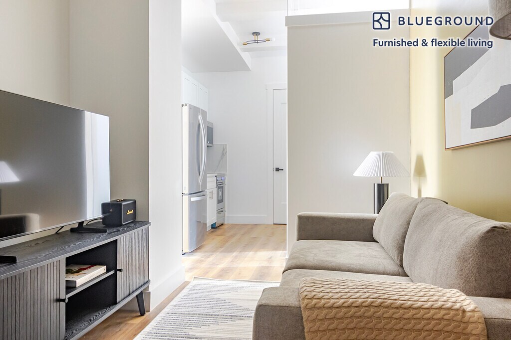 Show up and start living from day one in New York with this bright two bedroom Blueground apartment. You’ll love coming home to this thoughtfully furnished, beautifully designed, and fully equipped Midtown West home. (ID #NYC1863) The advertised rate of $4,480/month is the lowest available price, based on a 2 month(s) and 29 day(s) stay with a move-in date of November 4, 2025. If you’re looking for a 1-year stay, the rate is $5,540/month. Rates vary depending on the duration of stay, season, and other parameters. For exact pricing and additional pricing components, please visit our website and enter your desired move-in and move-out dates. The rate is applicable when billed upfront; it can be higher if billed in multiple payments. Brokers are welcome to reach out. Were you looking for an unfurnished lease? Try Blueground instead and upgrade from unfurnished to furnished living: - Furnished at rates comparable to unfurnished - No setup or furniture costs - save thousands - Move-in ready - save time, just bring your suitcase Designed with you in mind Gorgeous furniture, fully equipped kitchen, smart TV, and a premium wireless speaker are just a few of the amenities you’ll find inside this two bedroom apartment. Ideally located in New York, you’ll find a lot to love outside as well. When you’re ready to relax, you’ll be happy to discover every Blueground bedroom comes with superior quality mattresses, luxury linens, and cozy towels. We handle everything so you can simply show up and start living. This apartment also offers in-apartment laundry. Sleeping arrangements King Bed, 70.8in/180cm Queen Bed, 63in/160cm Amenities Building amenities unique to this two bedroom apartment include an on-site: - Doorman - Dryer - Elevator - Washing machine - Pets allowed Arrival and ongoing support The entire apartment is yours to enjoy! Throughout your stay, you’ll have access to our Client Experience team through the Blueground App. You can schedule additional cleanings, submit maintenance requests, and view our neighborhood recommendations with just a few taps. We’ll share all details upon confirmation of your stay. Ideally Located This furnished apartment is located in Midtown West, also known as Hell’s Kitchen. It is one of the city’s most iconic neighborhoods. Home to the bright lights of Times Square and Broadway, the area is constantly buzzing with activity. Along Restaurant Row diners can find a wide variety of flavors to please the extremely diverse crowds. There are countless options to satisfy any craving at any time of day. Midtown West offers serene strolls along the Hudson River, perfect for spending time outdoors on a sunny day. The pier mainly consists of sightseeing boats, which offer a unique way to experience the city. Close by are the relaxing corners of Bryant Park and the New York Public Library. The Midtown West area is easily accessible by public transport. Historic Grand Central Station is only a 20 minutes walk away. Other things to note This Blueground apartment has flexible lease options, allowing you to book it for one month, a year, or more. Pets are welcome, though weight limits and breed restrictions apply and may incur fees. Brokes CYOF. We take great pride in ensuring every photo displayed is shot in our own units with our actual furnishings. That said, we regularly refresh our decor and furniture arrangement, which may differ from what’s pictured.