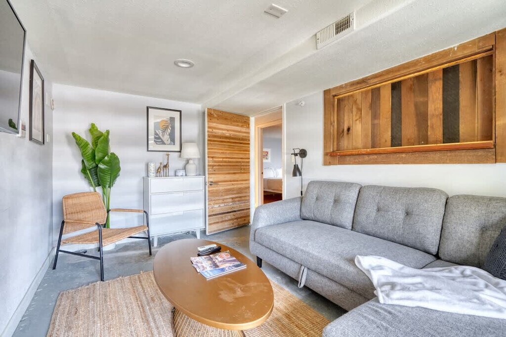 Feel at home in this modern, newly furnished four-bedroom apartment in Portland, a walker's paradise with a WalkScore of 96/100. Nestled between the Pearl District and Alphabet District in Northwest Portland, this apartment offers easy access to some of the city's best restaurants, bars, and shops. While the apartment features a small kitchen and lacks a dining area, the abundance of nearby dining options makes cooking unnecessary. Located between the vibrant Pearl District and Alphabet District, this apartment places you in the heart of Northwest Portland. Enjoy the convenience of having some of Portland's best restaurants, bars, and shops just a short walk away. The area is well-connected with public transportation, including a nearby streetcar rail, making it easy to explore the city. The property is situated below another unit, which may have guests occupying it. Additionally, there is limited shared space outside of the bedrooms. The streetcar rail nearby can be heard during quieter hours. Quiet hours are enforced between 22:00 and 8:00.