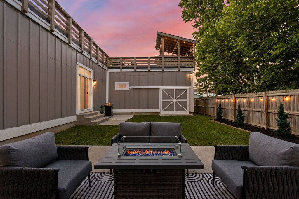 Unwind at this spacious and stylish home featuring a rooftop lounge, movie theater, arcade room, and firepit hangout. With four bedrooms, including one with an attached kids' nook, seven beds, and three and a half baths, there's room for everyone. Just a short drive to downtown Indianapolis, this home is ideal for families, groups, weddings, graduations, and work trips. The apartment boasts themed rooms thoughtfully spaced for privacy and relaxation, a Marvel-themed home theater with a popcorn machine, and a backyard putting green. Enjoy the game room with arcade machines and foosball, a fully equipped kitchen with modern appliances and ample counter space, and a spacious dining area for shared meals and celebrations. The rooftop lounge with string lights is perfect for evening hangouts, and the cozy fire pit offers a relaxing spot under the stars. Additional conveniences include in-house laundry, smart TVs, fast Wi-Fi, and garage parking. The property offers garage parking for added convenience. Located in the eclectic Fountain Square neighborhood, this area pulsates with artistic and vibrant energy. Known for its thriving cultural scene, the historic district offers a dynamic blend of local art galleries, trendy boutiques, and diverse culinary delights. With its lively atmosphere and a calendar brimming with cultural events and festivals, Fountain Square invites visitors to immerse themselves in its unique and welcoming ambiance. Nearby attractions include Fountain Square, Lucas Oil Stadium, Indianapolis Convention Center, Downtown Indianapolis, Gainbridge Fieldhouse, and Indianapolis Zoo, all within a short drive. Quiet hours are between 22:00 and 8:00. All damages must be reported promptly and are to be paid by the guest. No parties are allowed, with a $2000 fee for violations. No smoking is permitted, with a $1000 fee for violations. All trash must be disposed of and the dishwasher started before check-out. The maximum property capacity is eight, and no unregistered guests are allowed. Exterior security cameras are motion-activated and can be remotely monitored to ensure a secure stay. A Minut sensor inside the home tracks sound levels and smoke detection but does not record audio. Tampering with the cameras or sensor will result in additional fees. Early check-in or late check-out may be accommodated upon request. The home is equipped with fast Wi-Fi, making it suitable for remote work. Registration Number: SRP-000545 [SI]