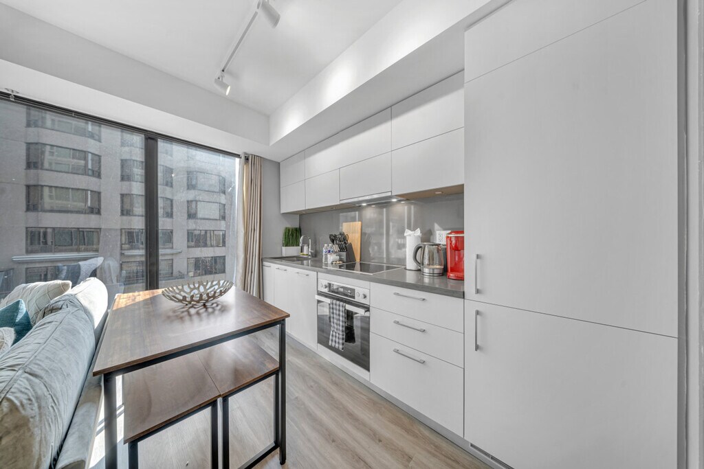 The advertised rate of C$4,147/month is the lowest available price, based on a 1 month(s) stay with a move-in date of April 8, 2026. Rates vary depending on the duration of stay, season, and other parameters. For exact pricing and additional pricing components, please visit our website and enter your desired move-in and move-out dates. The rate is applicable when billed upfront; it can be higher if billed in multiple payments. Relax and feel at home in this downtown 1-bedroom apartment on Cumberland Street, in the heart of Toronto and the Yorkville area. This modern and comfortable apartment features a fully equipped kitchen, a comfortable bedroom, and an open-concept living area. The kitchen includes a microwave, stove, oven, refrigerator/freezer, dishwasher, sink, glasses, silverware, pots, pans, and a dining table. Enjoy access to high-speed Wi-Fi, air conditioning, heating, and an in-unit washer/dryer. Paid parking is available on the premises. Pets are welcome with a fee of $25 per day for 1-5 days, $200 for 6-28 days, and $300 for 29+ days. Enjoy award-winning restaurants, bars, shops, and attractions nearby. Easily explore Toronto from this prime location. Parties are not allowed, and there is a $500 surcharge charged to groups that are deceitful about the use of the apartment. Smoking is not allowed inside the property or on the balcony. Evidence of indoor smoking will result in a $1000 fine and termination of the reservation. Unregistered guests are not allowed inside the property at any time. A surcharge of $100 per undeclared guest per night will be applied for each unapproved guest. Check-in and check-out times are mandatory, unless scheduled and confirmed 24 hours in advance and only if it does not disturb upcoming guest reservations. A $100/hour penalty is applied if guests fail to check out by 11 am. Includes an office desk. [SI]